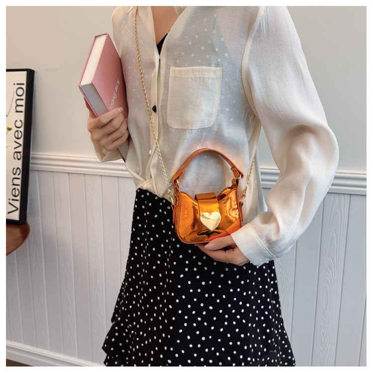 어린이 가방 2025 새로운 패션 복숭아 심장 미니 핸드백 특허 가죽 밝은 체인 가방 부모-자식 크로스 바디 백