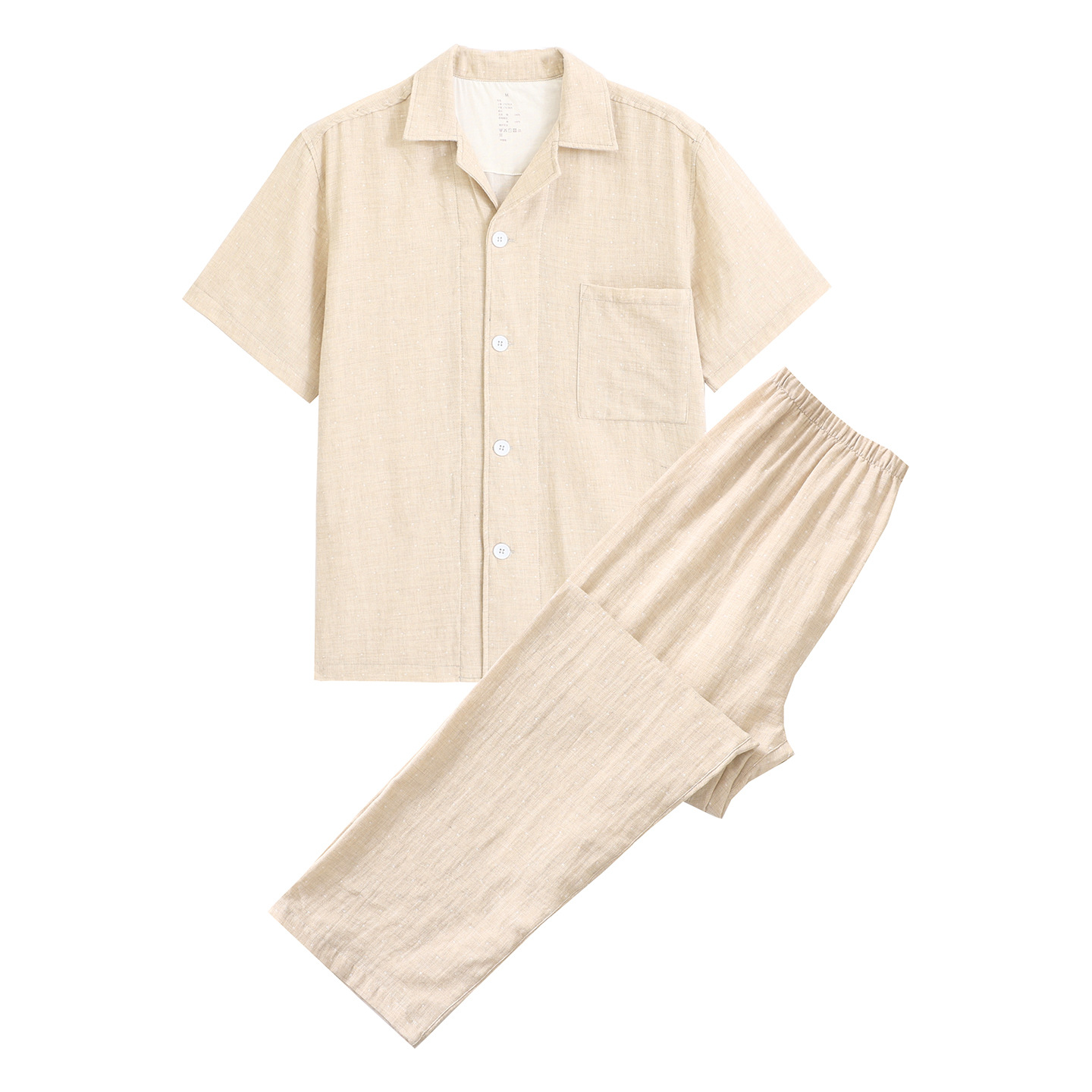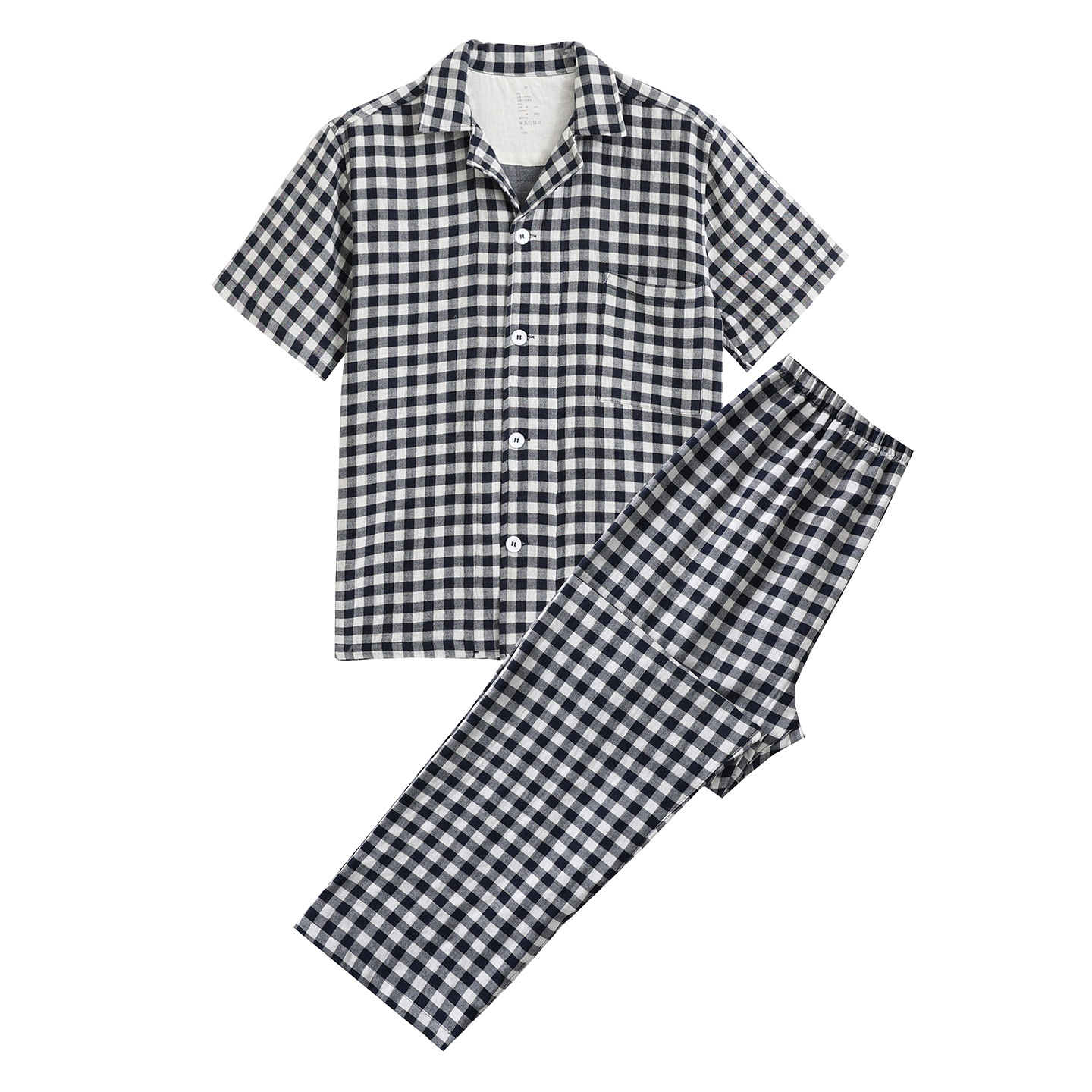 MUJI 스타일 좋은 제품 세척 코튼 더블 레이어 원사 파자마 여성용 퓨어 코튼 반팔 바지 퓨어 코튼 여름 커플 홈 의류