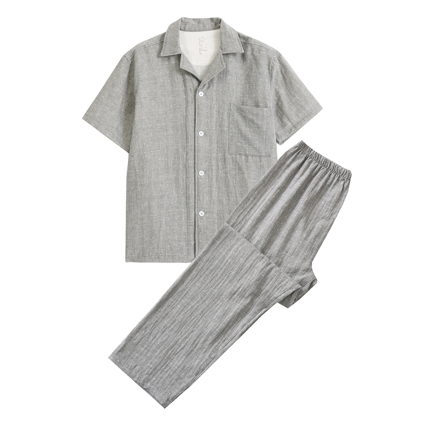 • (남) 회색 도트무늬 이중 거즈 반팔 바지