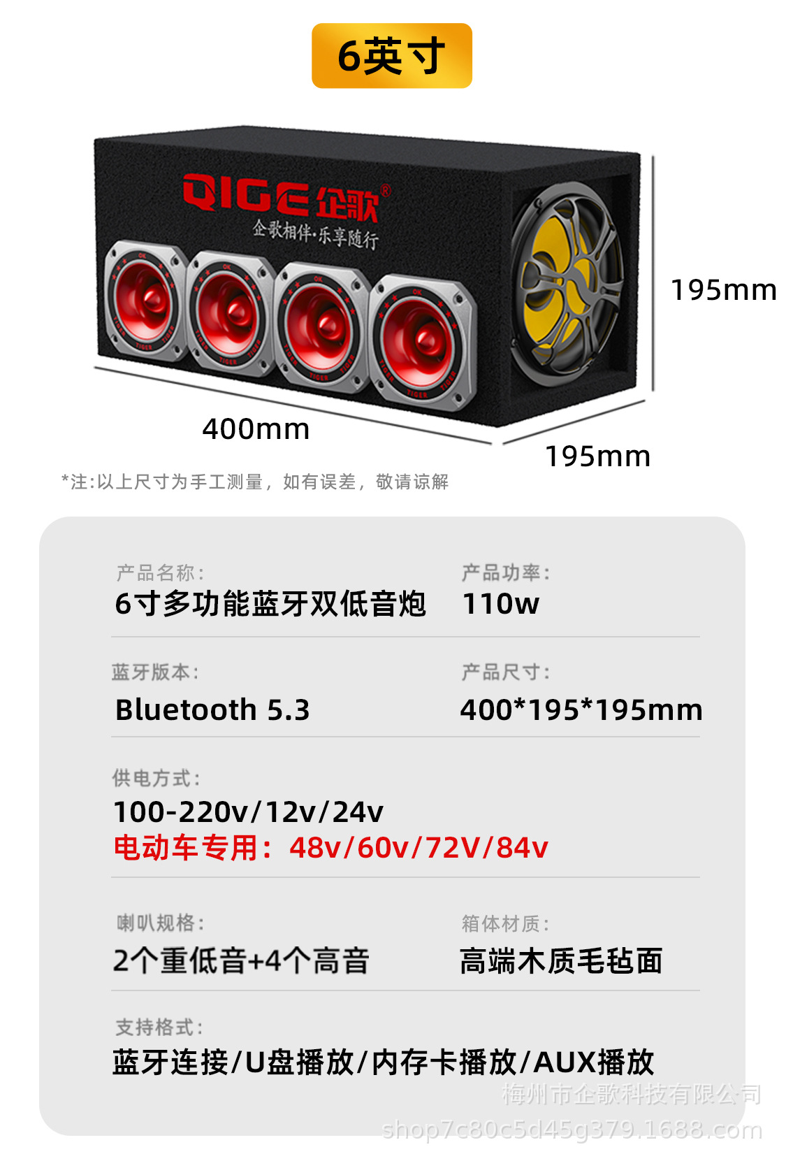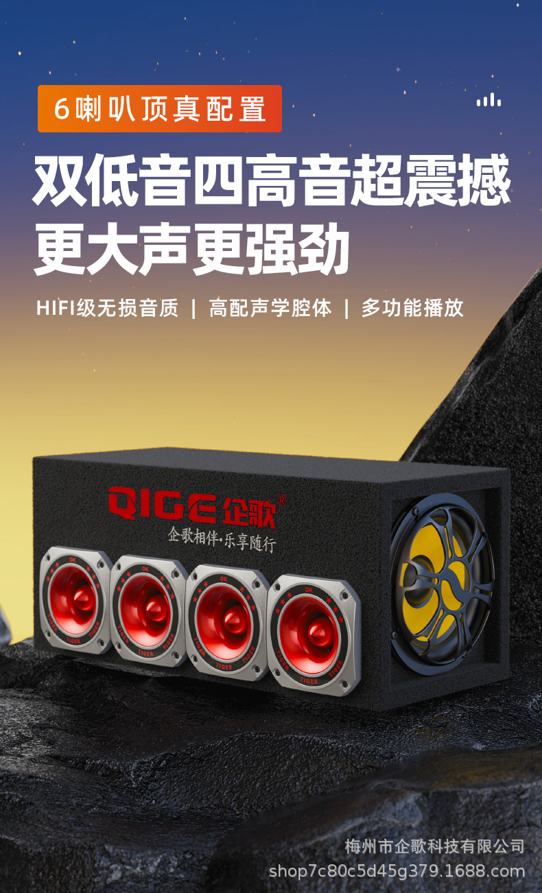 전기 자동차 6 경적 높은 볼륨 듀얼베이스 홈 자동차 서브 우퍼 자동차 오디오 높은 전원 블루투스 스피커스토어 가기