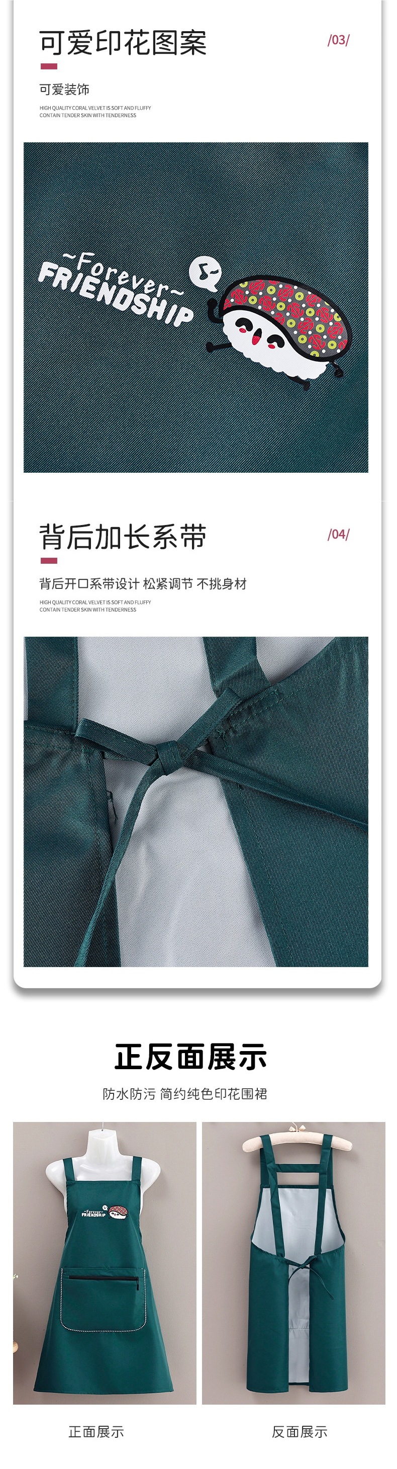 여성용 새 스타일 앞치마, 방수 및 방유, 주방, 가정 요리, 얼룩 방지, 레스토랑 작업복, 범용 인쇄 로고