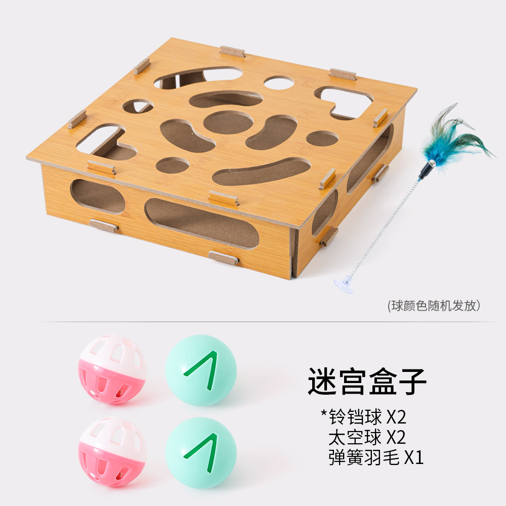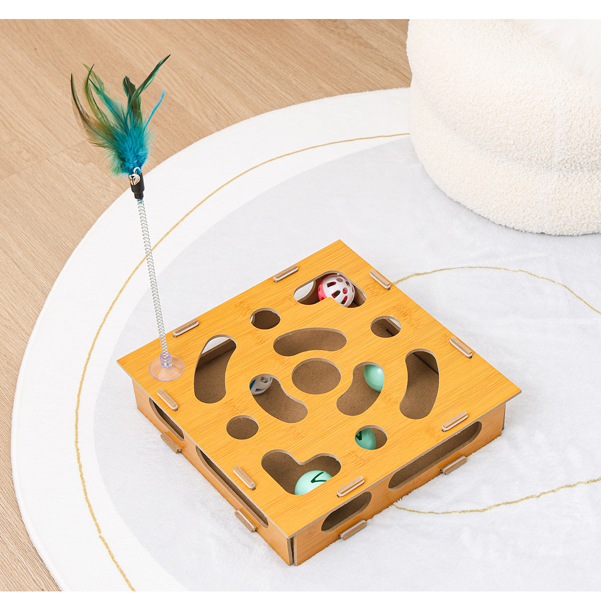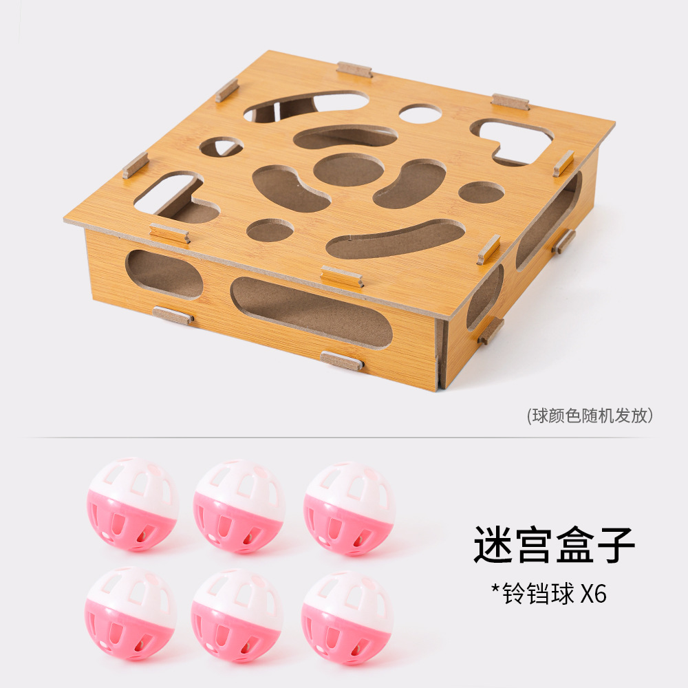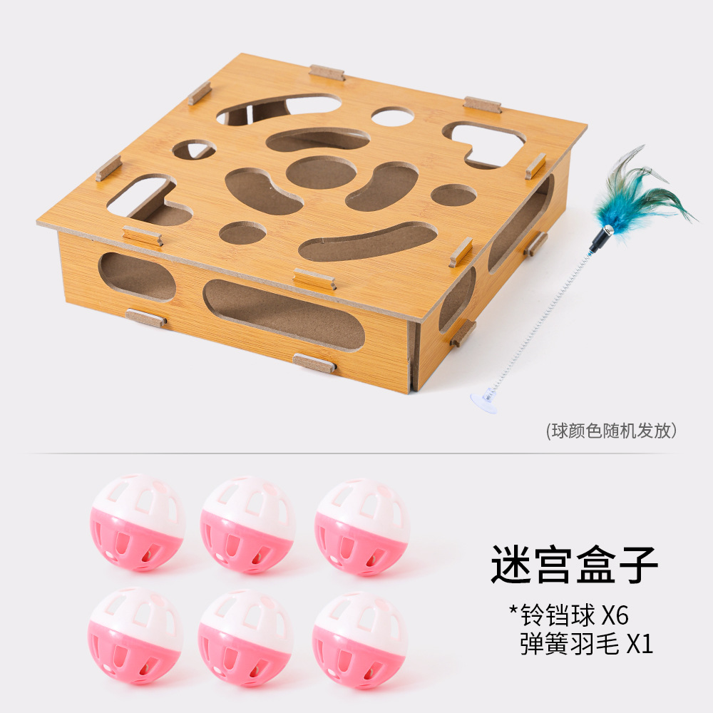고양이 교육용 장난감, 고밀도 보드 구멍 뚫기 게임 상자, 에너지 소모 벨 공, 새끼 고양이 자기 즐거움 및 지루함 해소 미로 상자