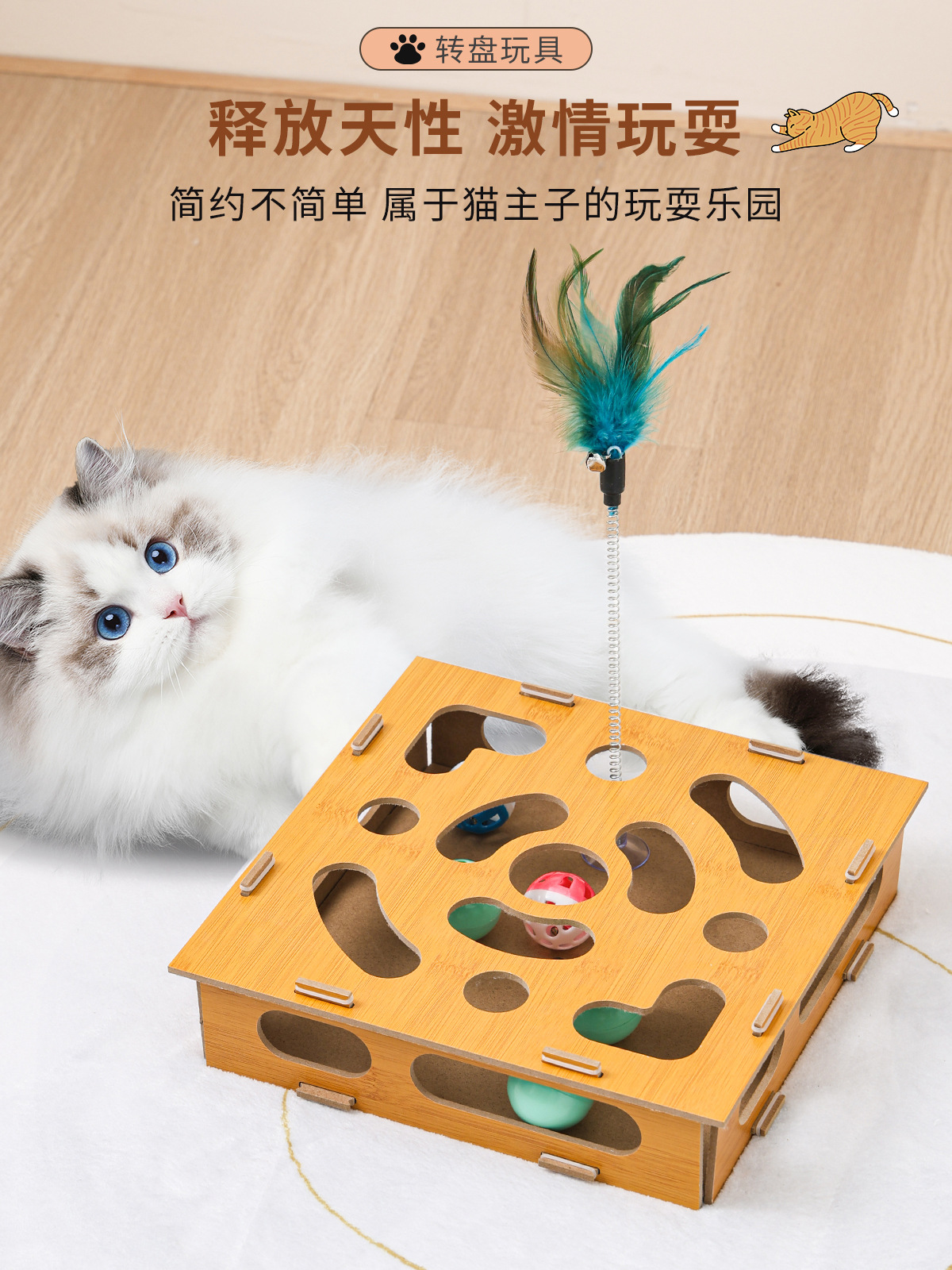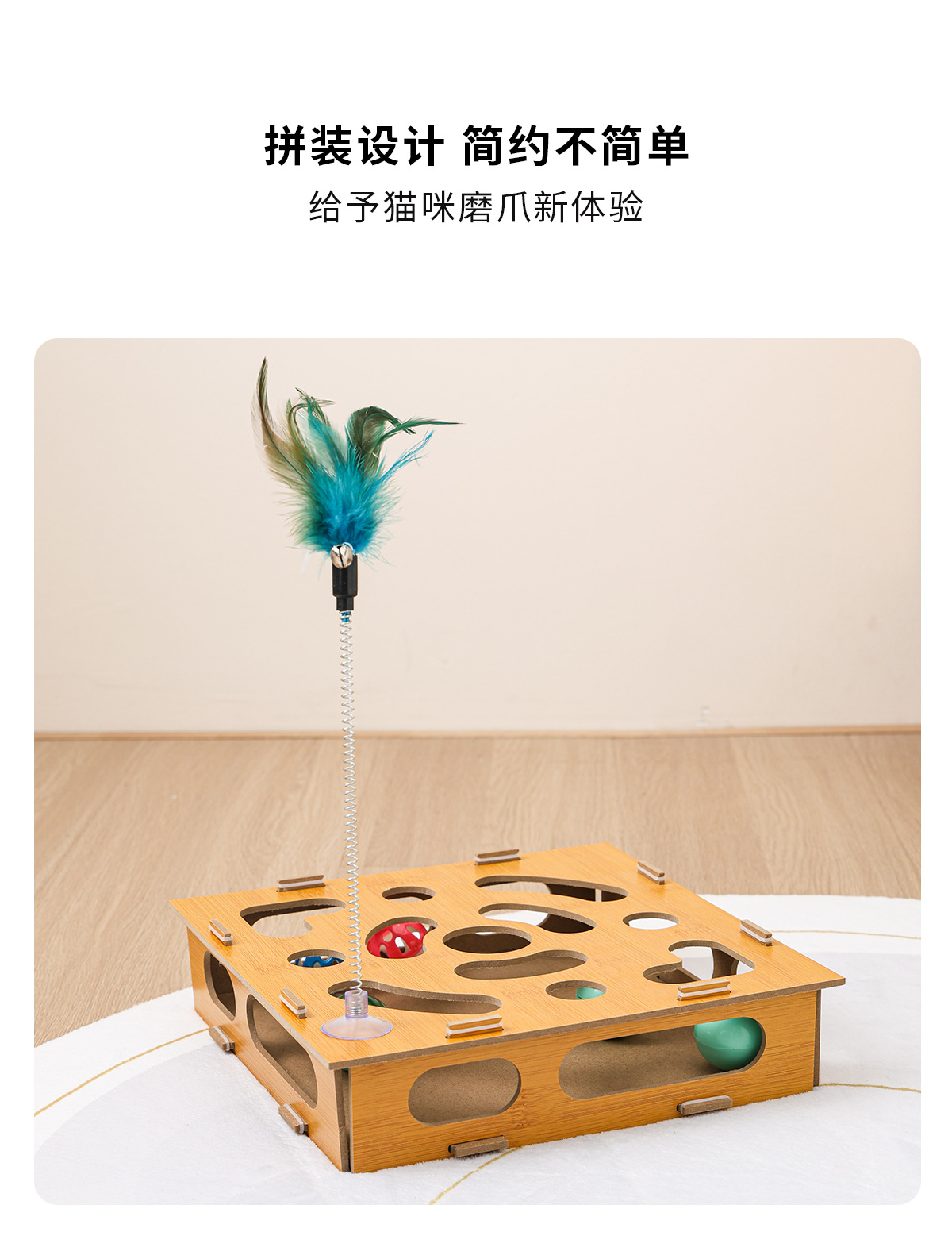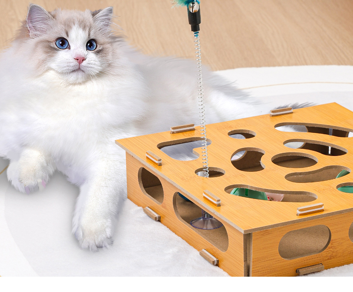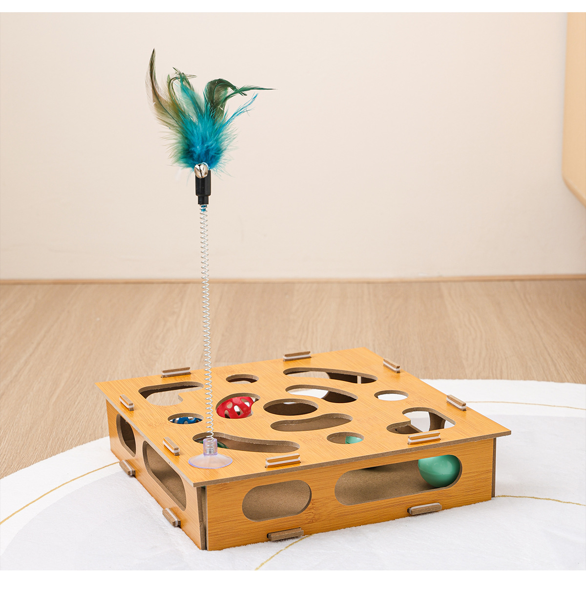 고양이 교육용 장난감, 고밀도 보드 구멍 뚫기 게임 상자, 에너지 소모 벨 공, 새끼 고양이 자기 즐거움 및 지루함 해소 미로 상자
