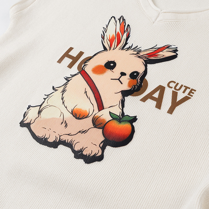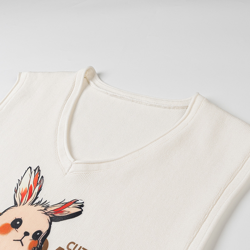 2025 여름 새로운 디자인 핀치 허리 V 넥 민소매 조끼, 세련된 토끼 프린트 여성 탑스토어 가기