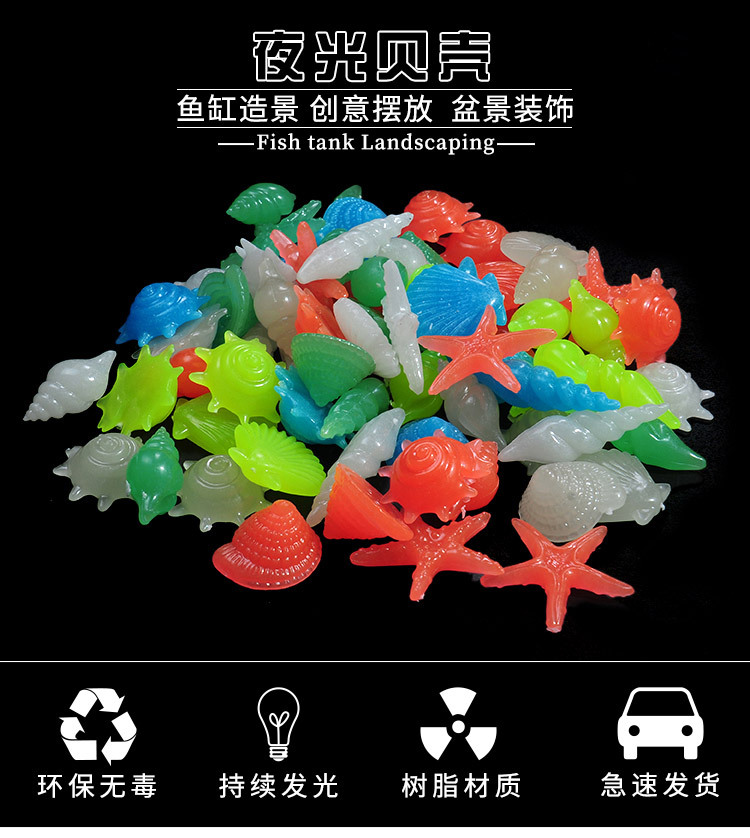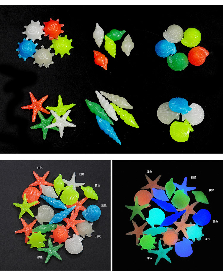 빛나는 조가비 껍질과 불가사리 오래 지속되는 빛나는 인공 빛나는 장식 물고기 탱크 조경 소원 병 100 개/갑스토어 가기