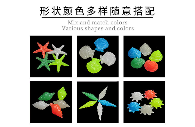 빛나는 조가비 껍질과 불가사리 오래 지속되는 빛나는 인공 빛나는 장식 물고기 탱크 조경 소원 병 100 개/갑