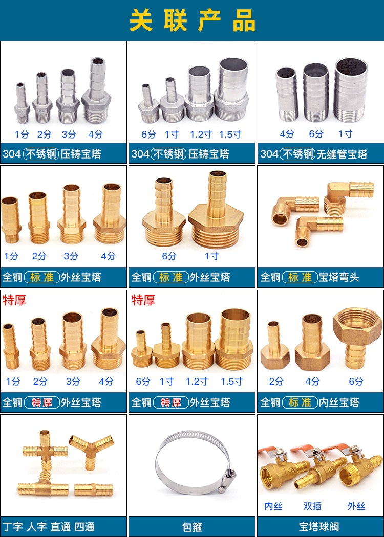 두꺼운 구리 파고다 커넥터 외부 와이어 그린 헤드/워터 파이프 1/2/3/4 포인트 워터 펌프 호스 가죽 파이프 커넥터