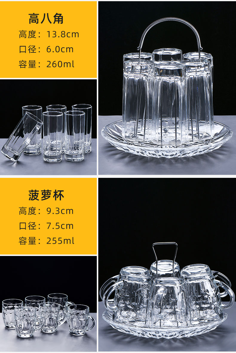 접대용 물컵 세트, 내열성 투명 거실 맥주 컵, 손님용 가정용 컵, 유리 컵, 찻잔, 식수 세트