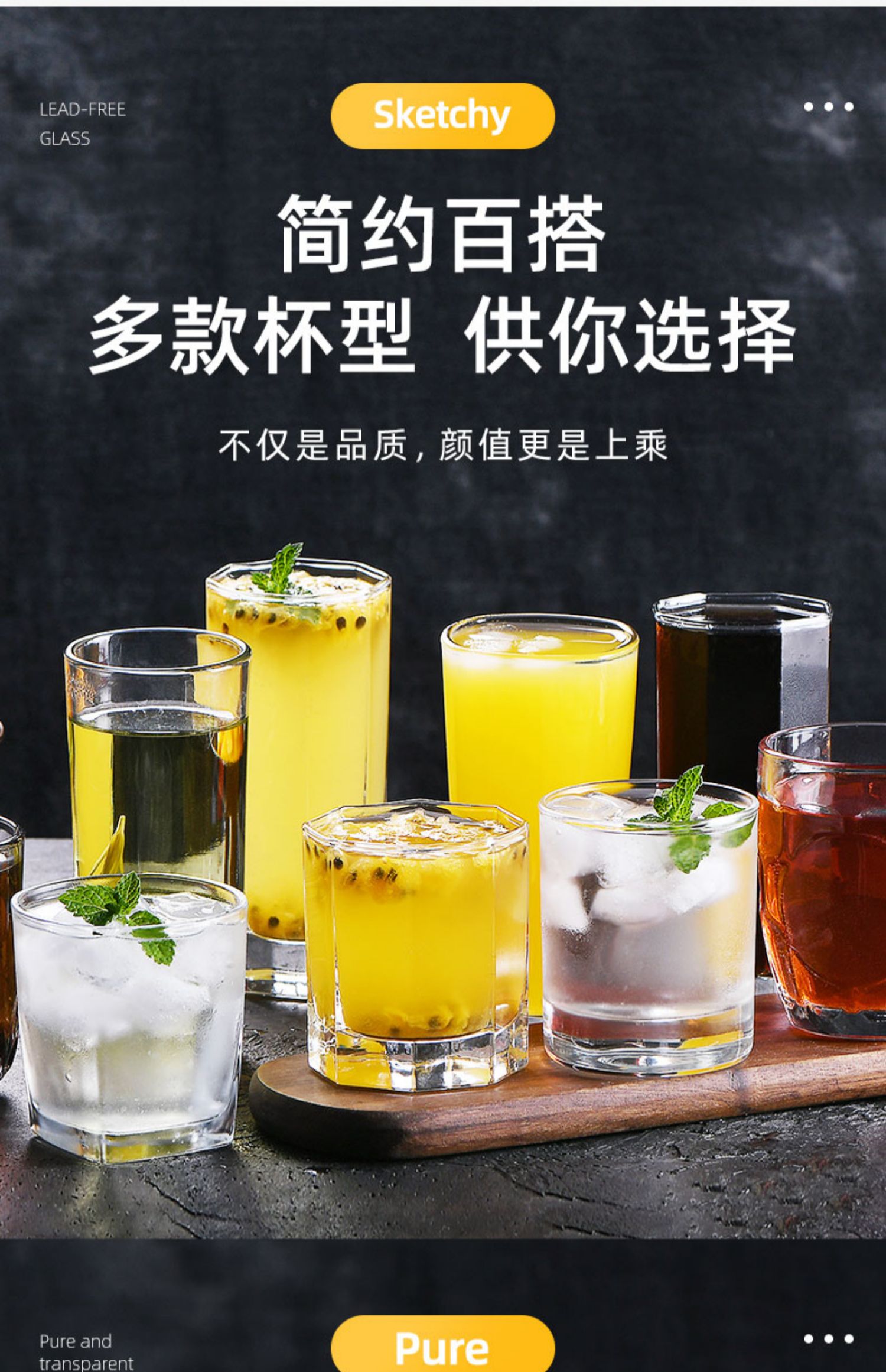 접대용 물컵 세트, 내열성 투명 거실 맥주 컵, 손님용 가정용 컵, 유리 컵, 찻잔, 식수 세트스토어 가기