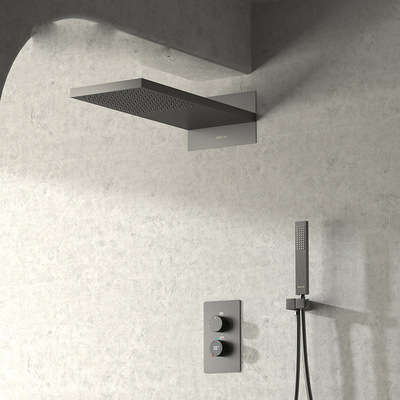 공장 직접 은폐 된 샤워 구리 뜨거운 차가운 디지털 디스플레이 가정용 호텔 미니멀 캐노피 흰색 임베디드 샤워 세트