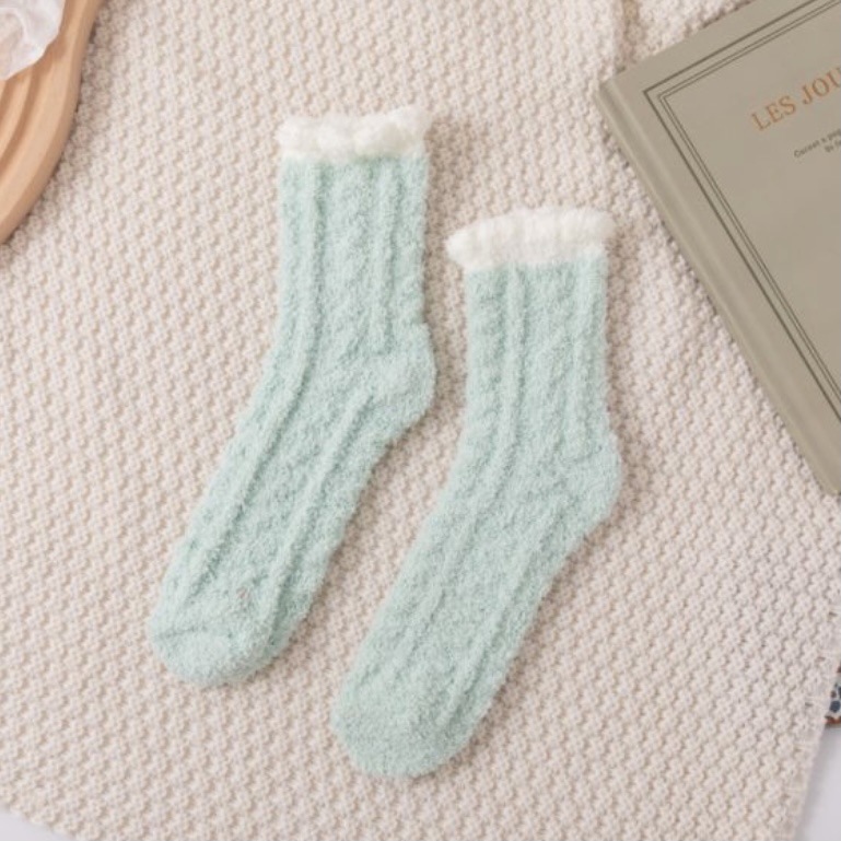 Suxuan Coral Velvet 양말 여자의 가을과 겨울 기모 두꺼운 봉제 따뜻한 가정 바닥 달 수면스토어 가기
