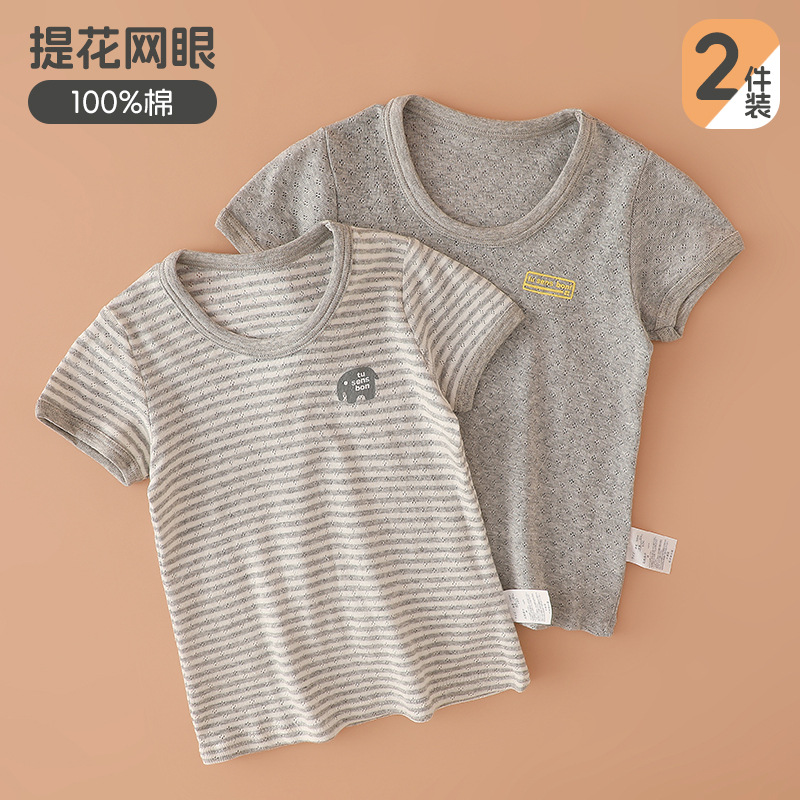 일본 메쉬 베이비 보이 반팔 티셔츠 통기성 스트라이프 탑 100% 코튼 어린이 학생 반팔 셔츠