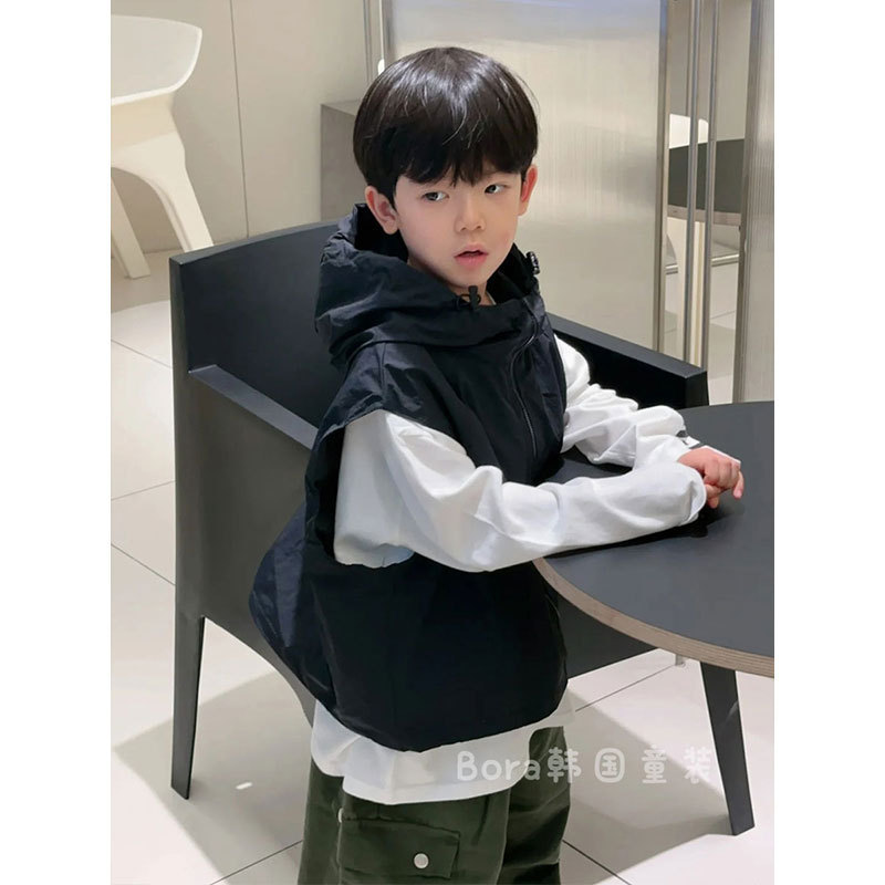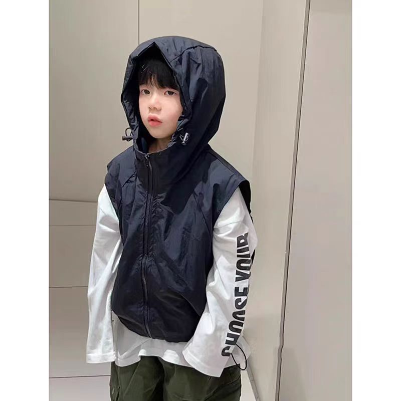 소년 조끼 봄과 가을 새로운 스타일 잘 생긴 스트리트 작업 조끼 소녀 블랙 탑 재킷 어린이 2025 유행스토어 가기