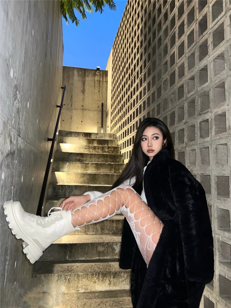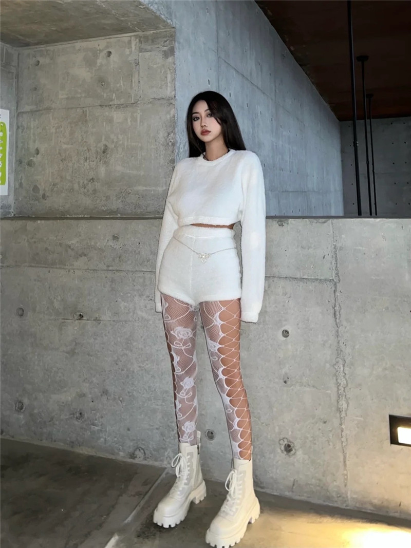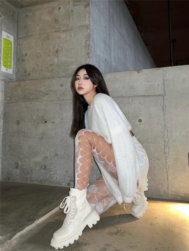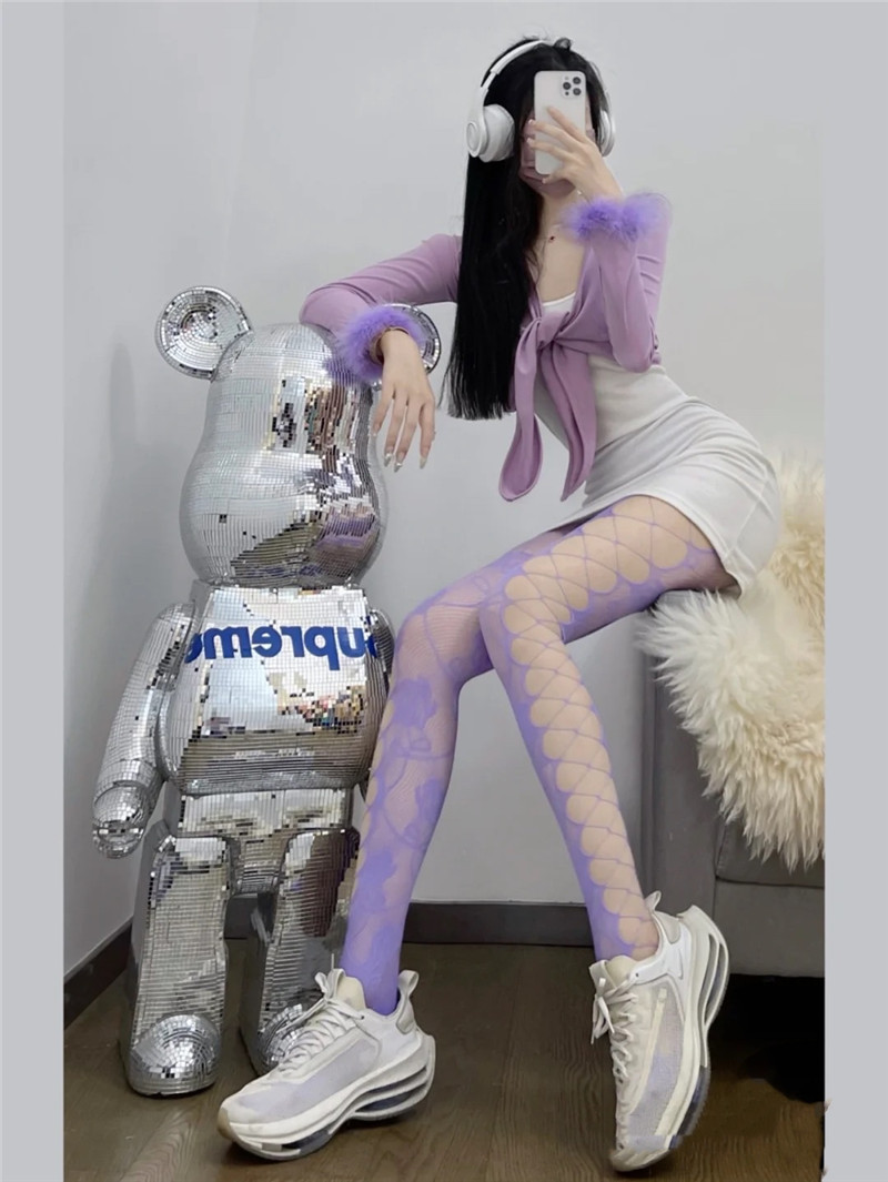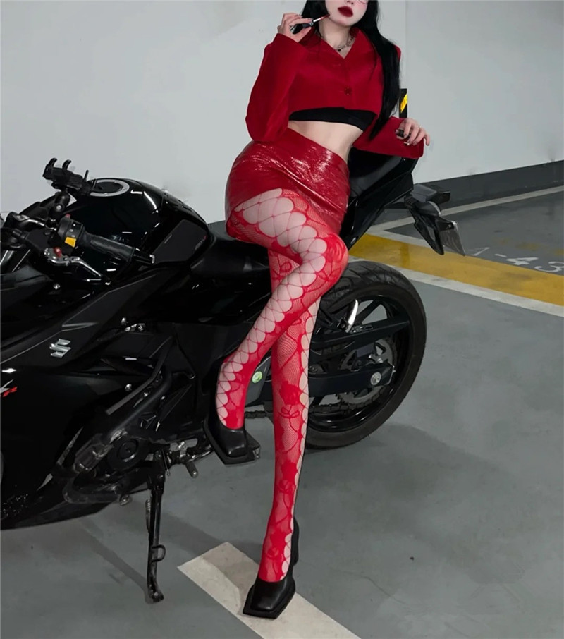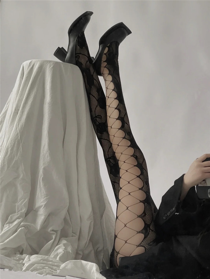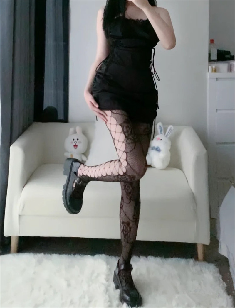 어린이를위한 스파이스 걸스 섹시한 유혹 컬러 네트 스타킹 로즈 자카드 사이드 크로스 스트랩 할로우 홀 틈새 팬티 스타킹스토어 가기