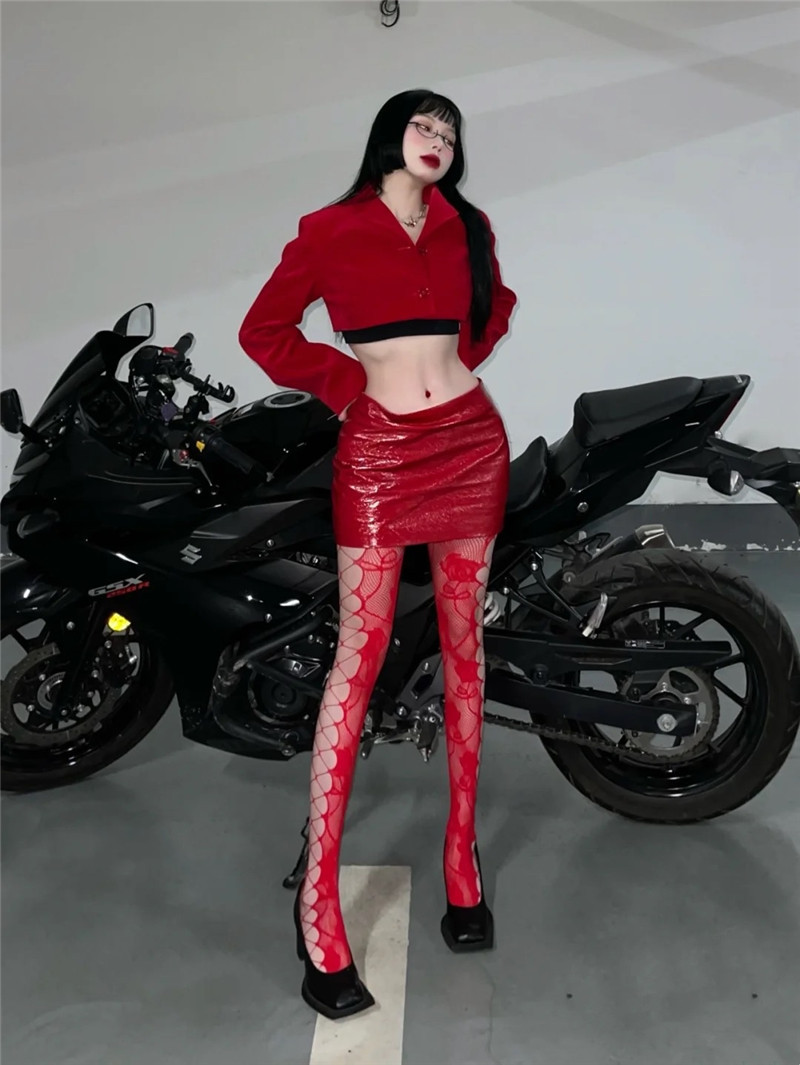 어린이를위한 스파이스 걸스 섹시한 유혹 컬러 네트 스타킹 로즈 자카드 사이드 크로스 스트랩 할로우 홀 틈새 팬티 스타킹