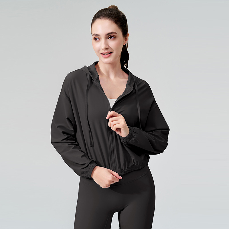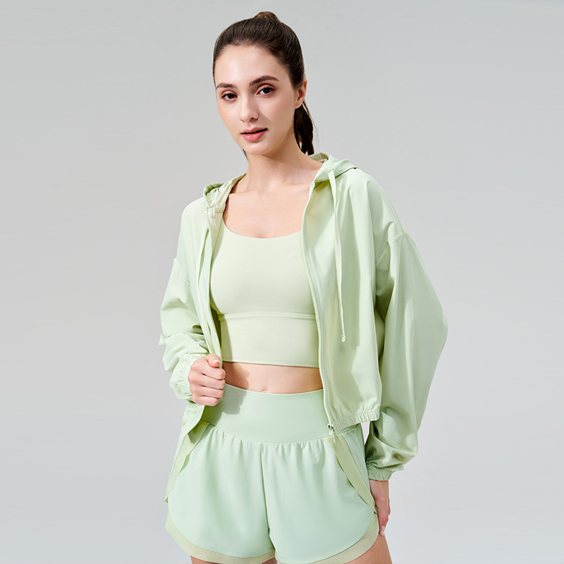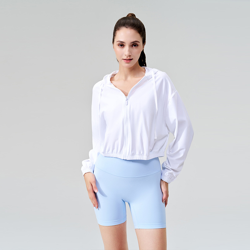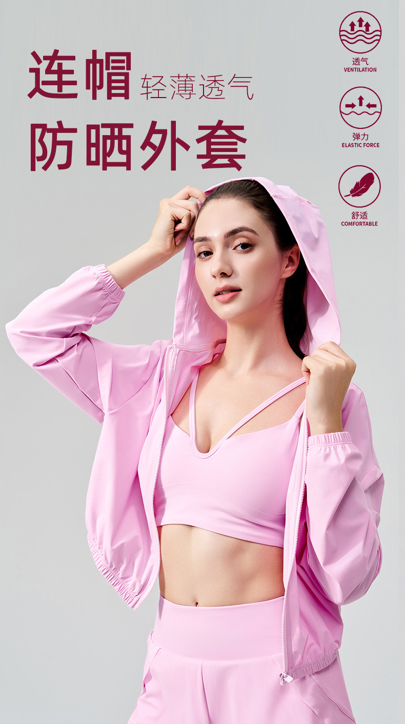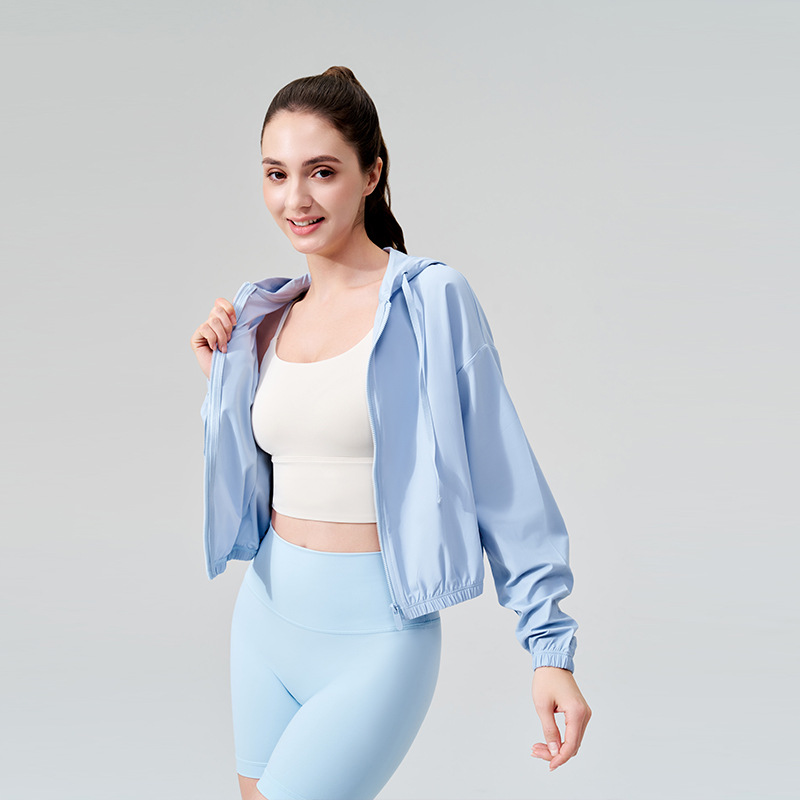 2025 새로운 여름 시원한 선 스크린 의류 여성 스포츠 재킷 후드 드로우 스트링 안티-UV 야외 요가 의류