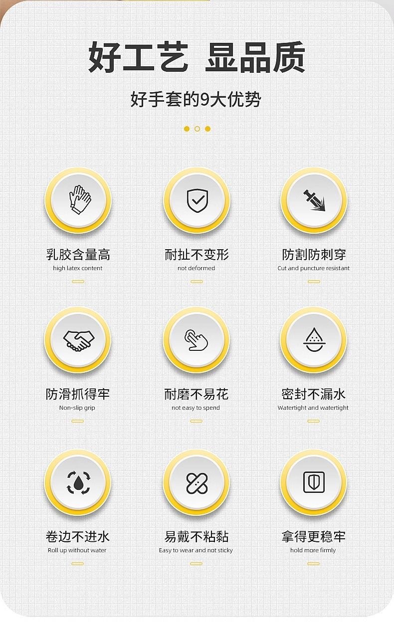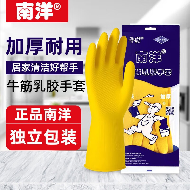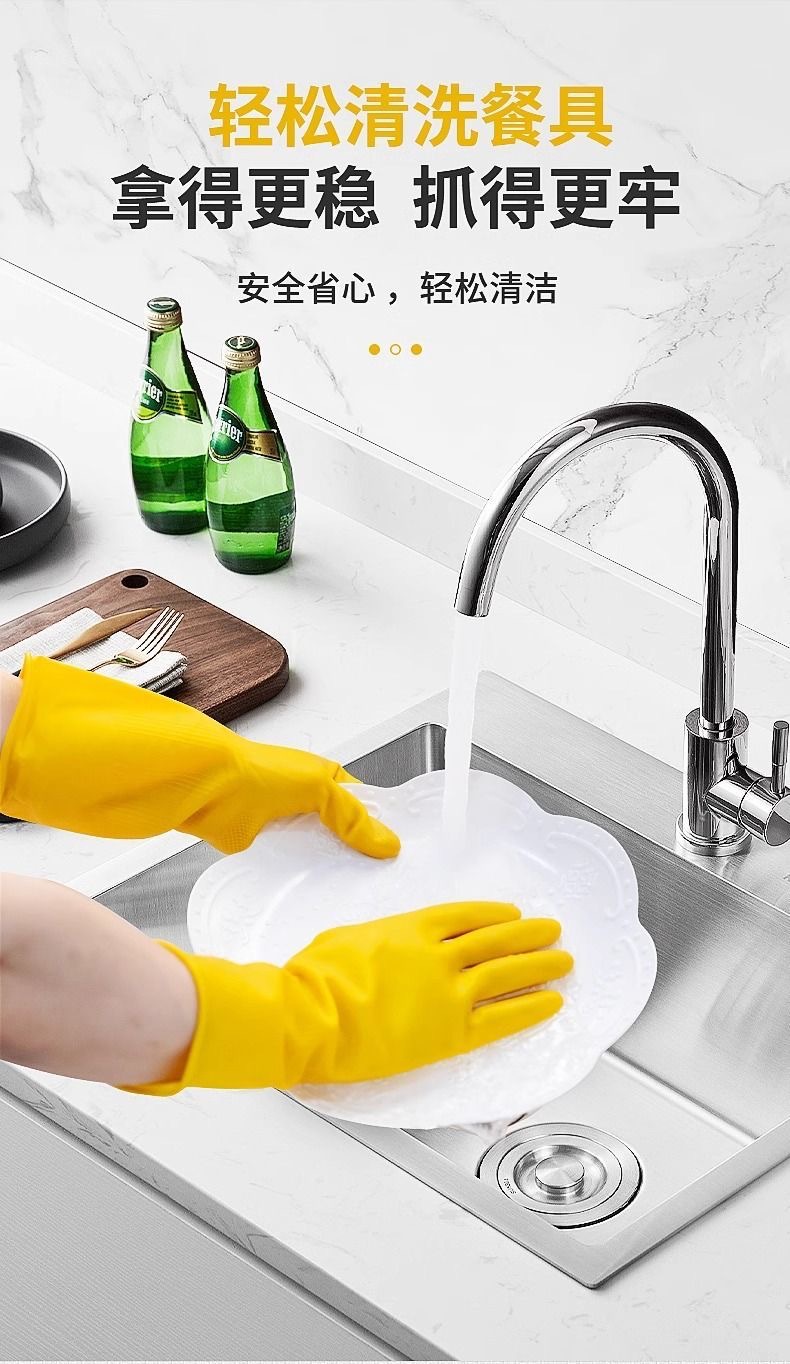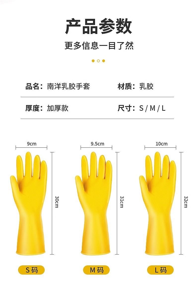 천재적인 남양 소가죽 라텍스 장갑, 두꺼워지고 내마모성, 방수, 미끄럼 방지, 주방 설거지, 가사 청소, 다용도스토어 가기