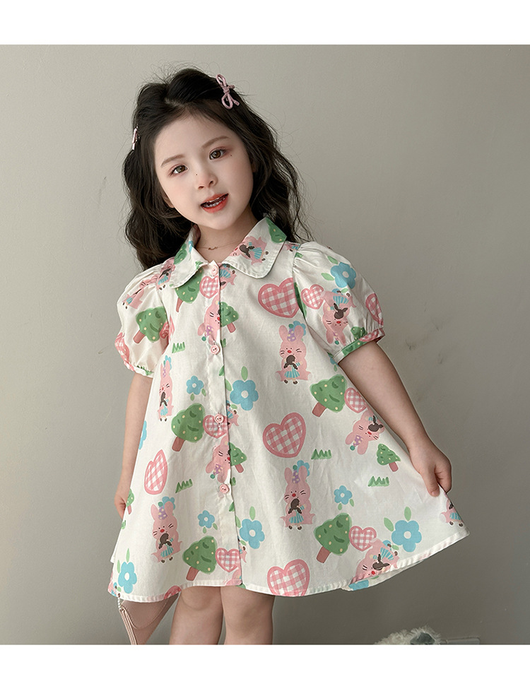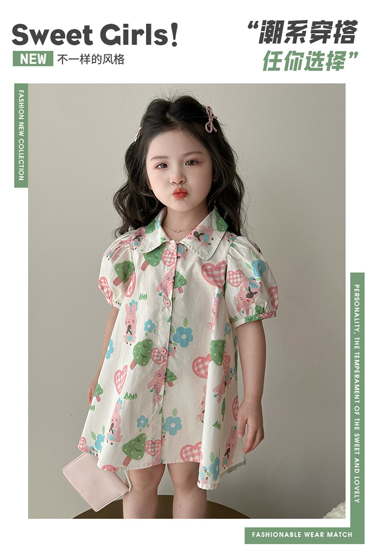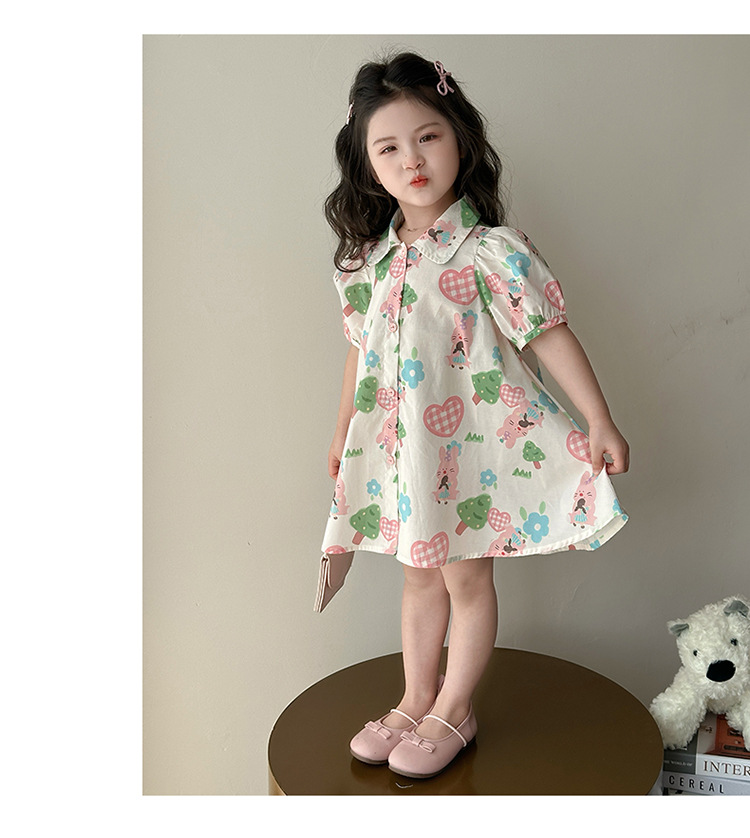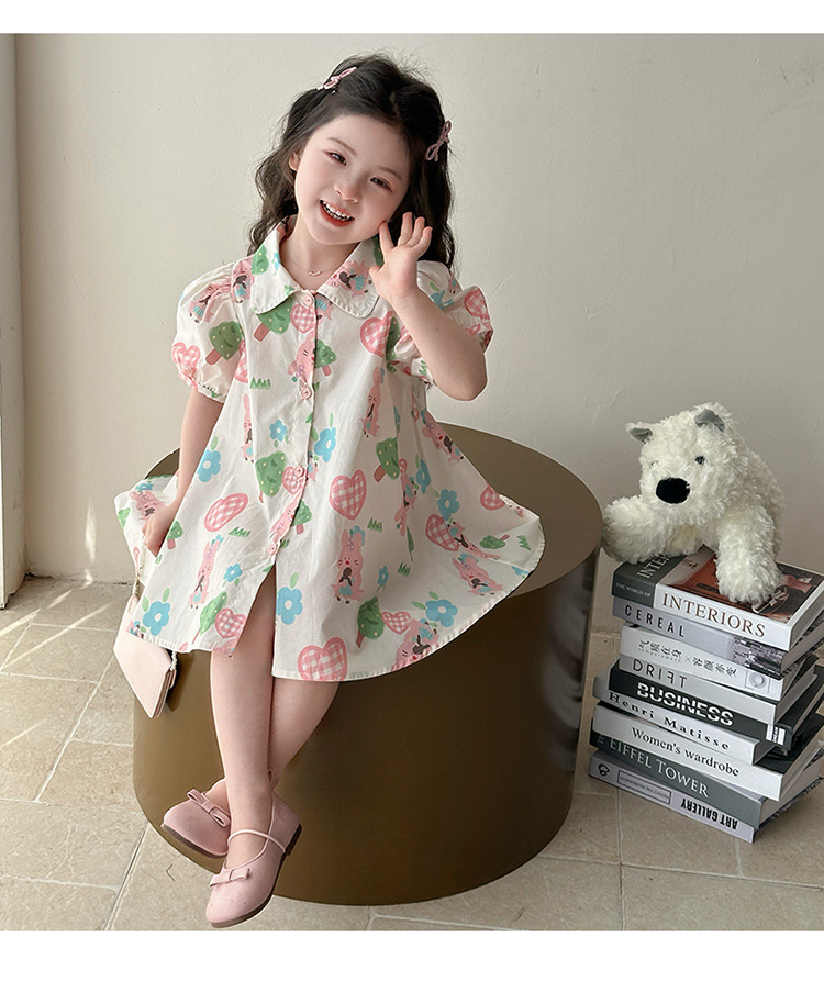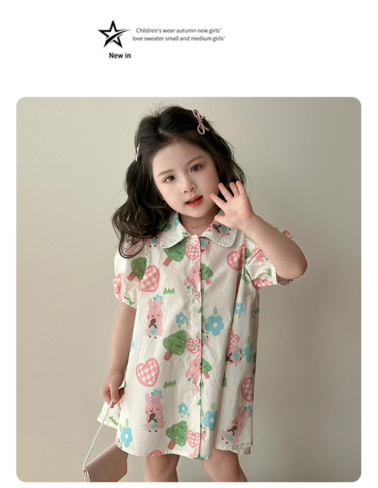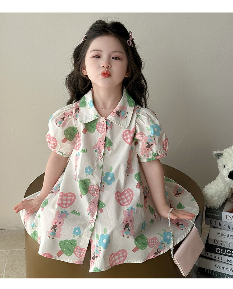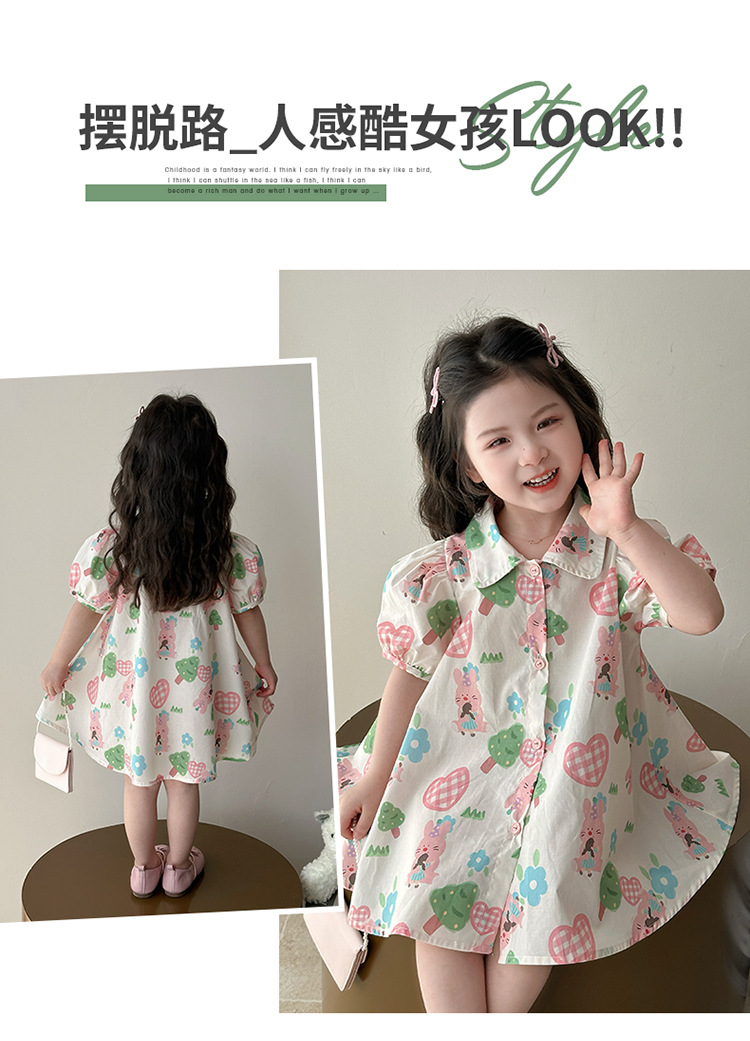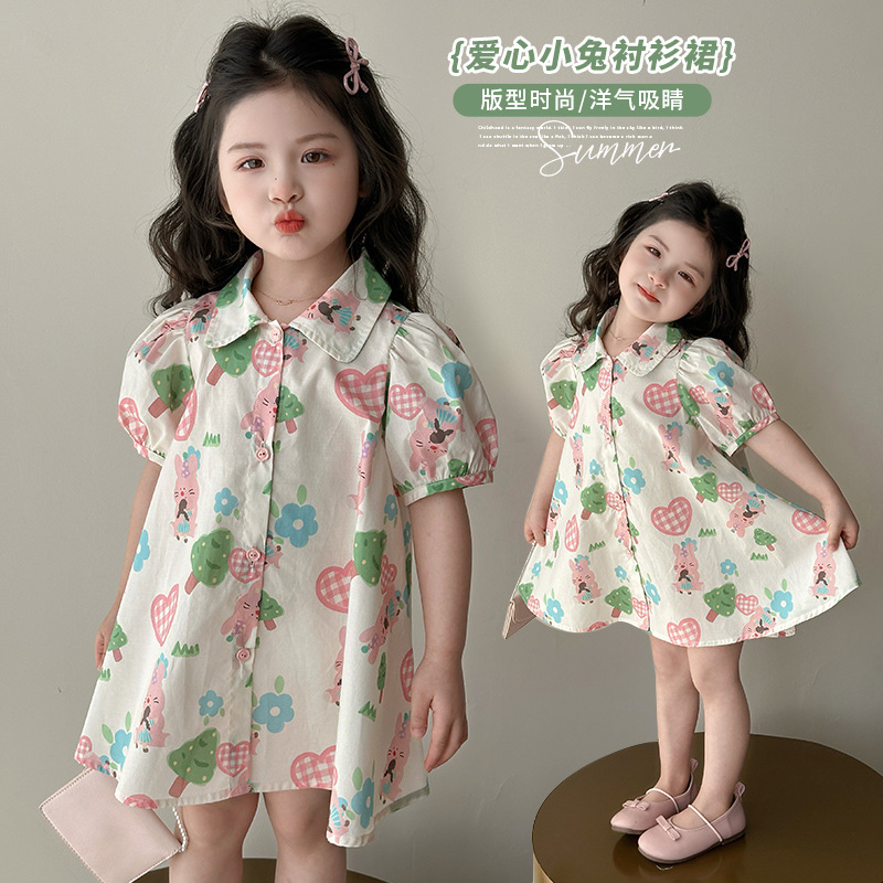 소녀 사랑 토끼 셔츠 원피스 2025 여름 새로운 패션 소녀 세련된 원피스 어린이 여름 원피스스토어 가기