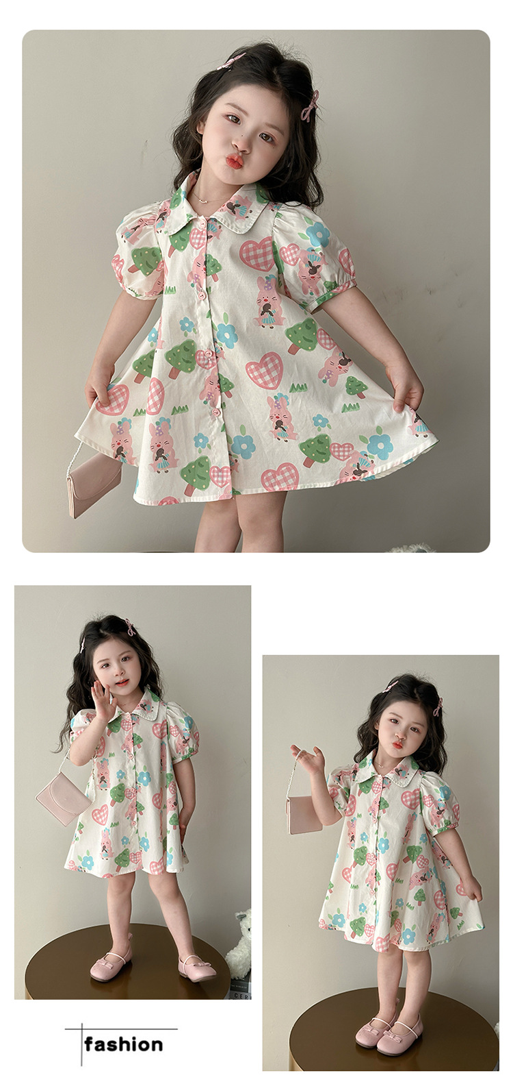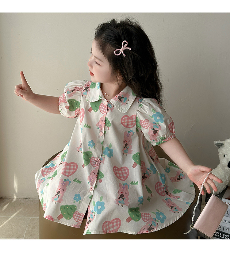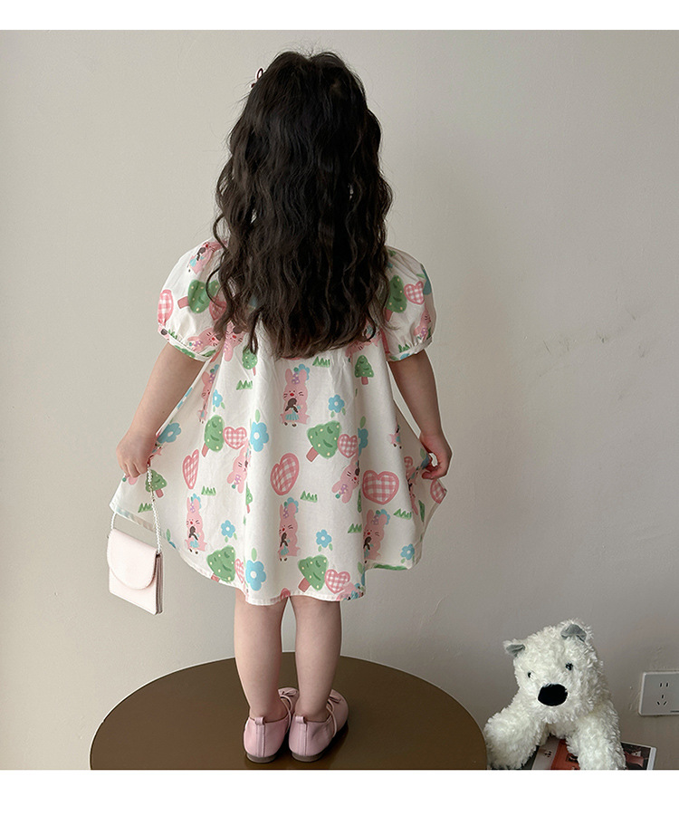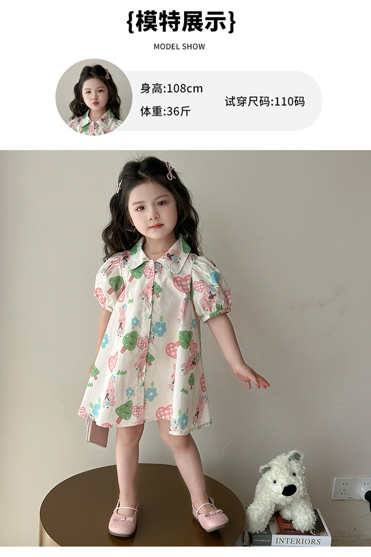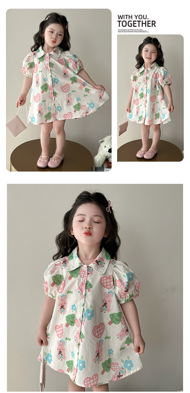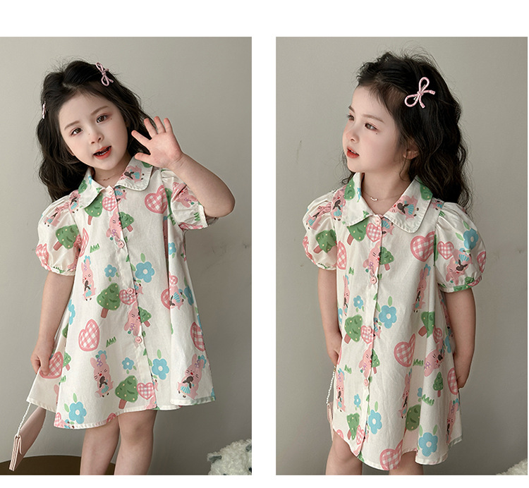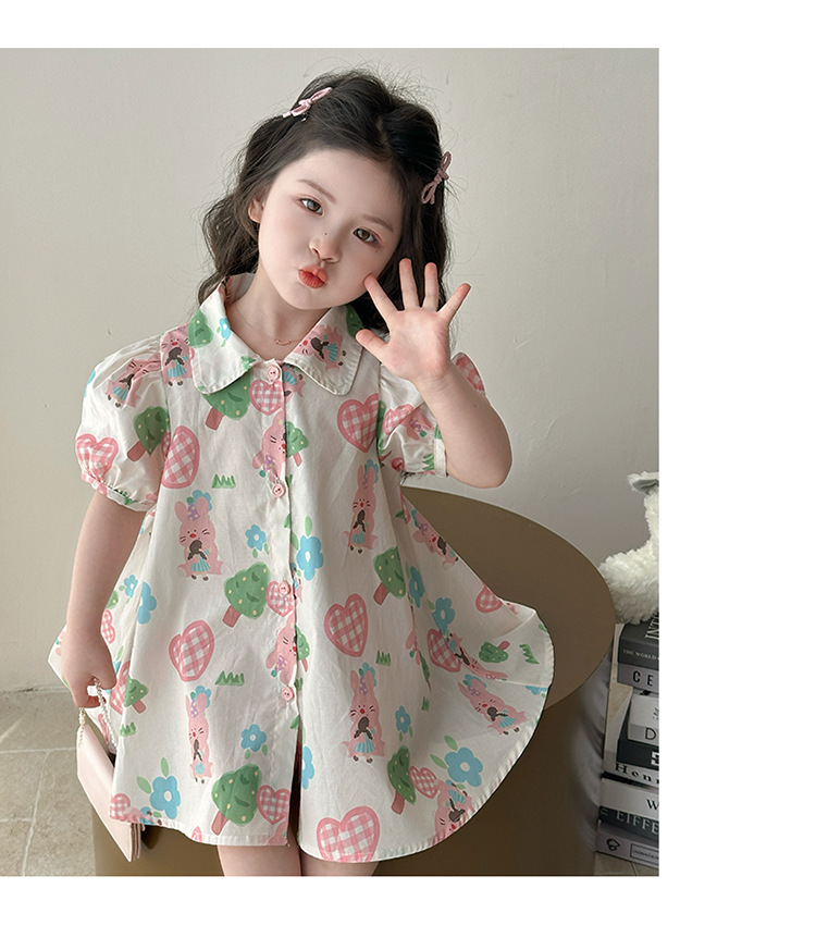 소녀 사랑 토끼 셔츠 원피스 2025 여름 새로운 패션 소녀 세련된 원피스 어린이 여름 원피스스토어 가기