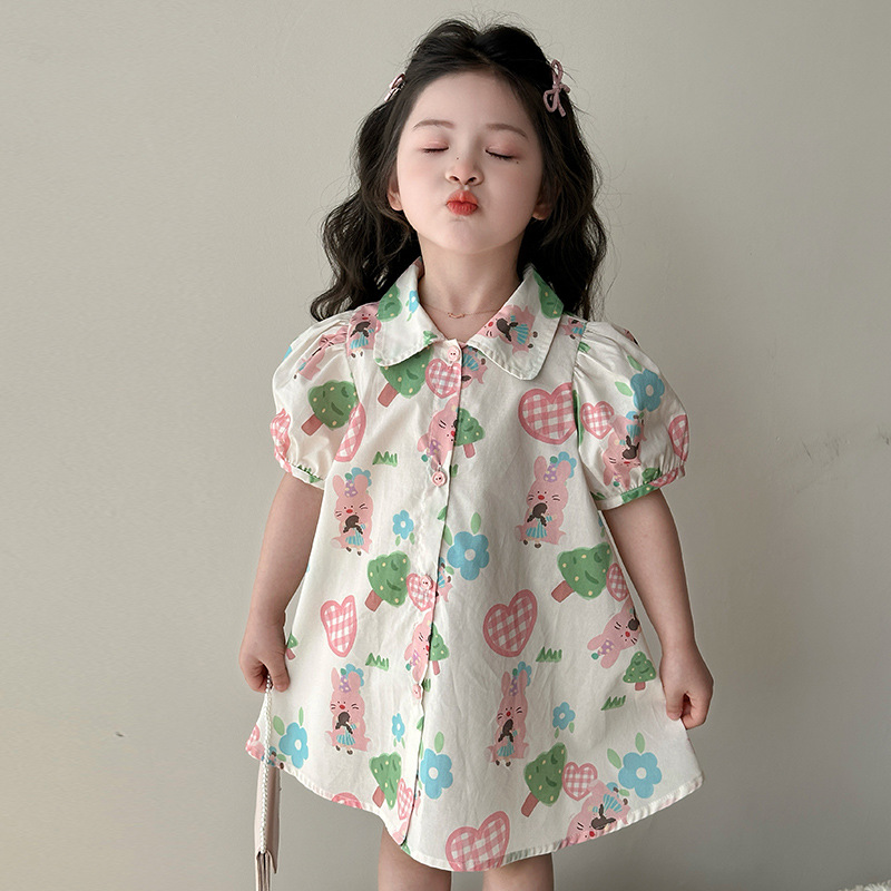 여아용 사랑스러운 토끼 셔츠 드레스 2026 여름 신상 패션 어린 소녀들을 위한 스타일리쉬한 원피스 중소 아동 여름옷