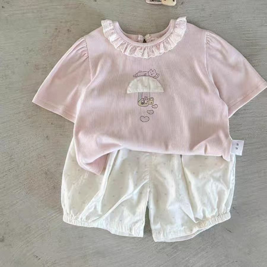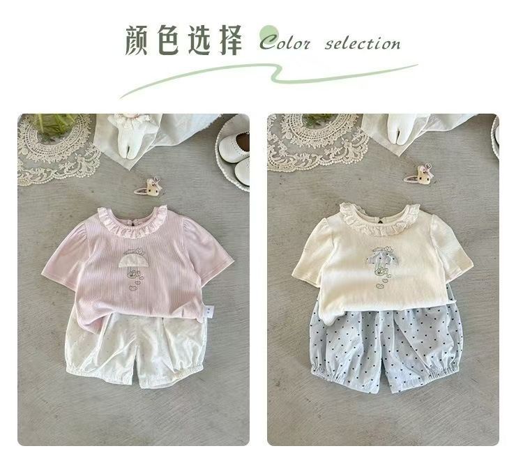 새로운 소녀 여름 세트 2025 서양식 아기 옷 여름 얇은 아기 분할 투피스 클래스 A스토어 가기