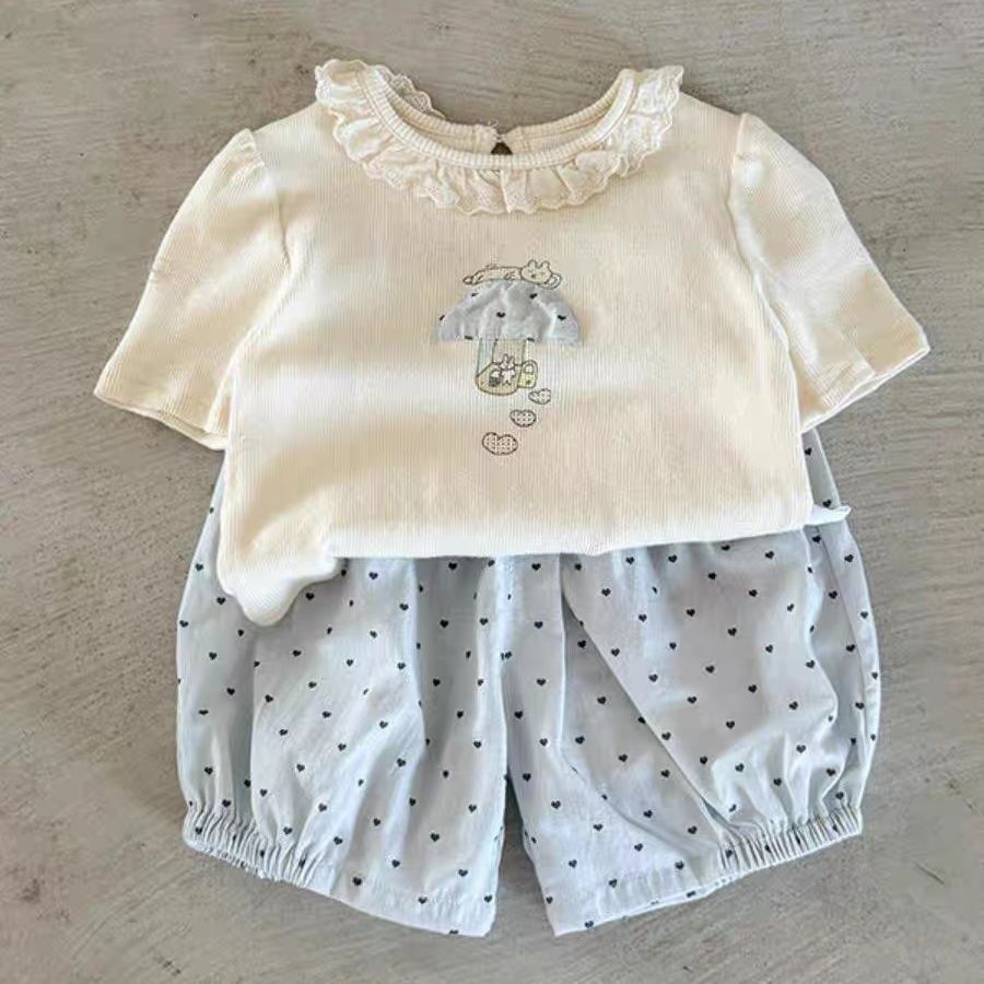 새로운 소녀 여름 세트 2025 서양식 아기 옷 여름 얇은 아기 분할 투피스 클래스 A