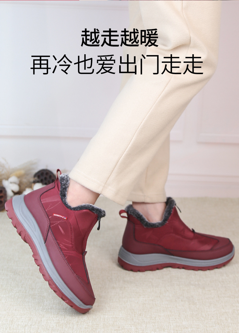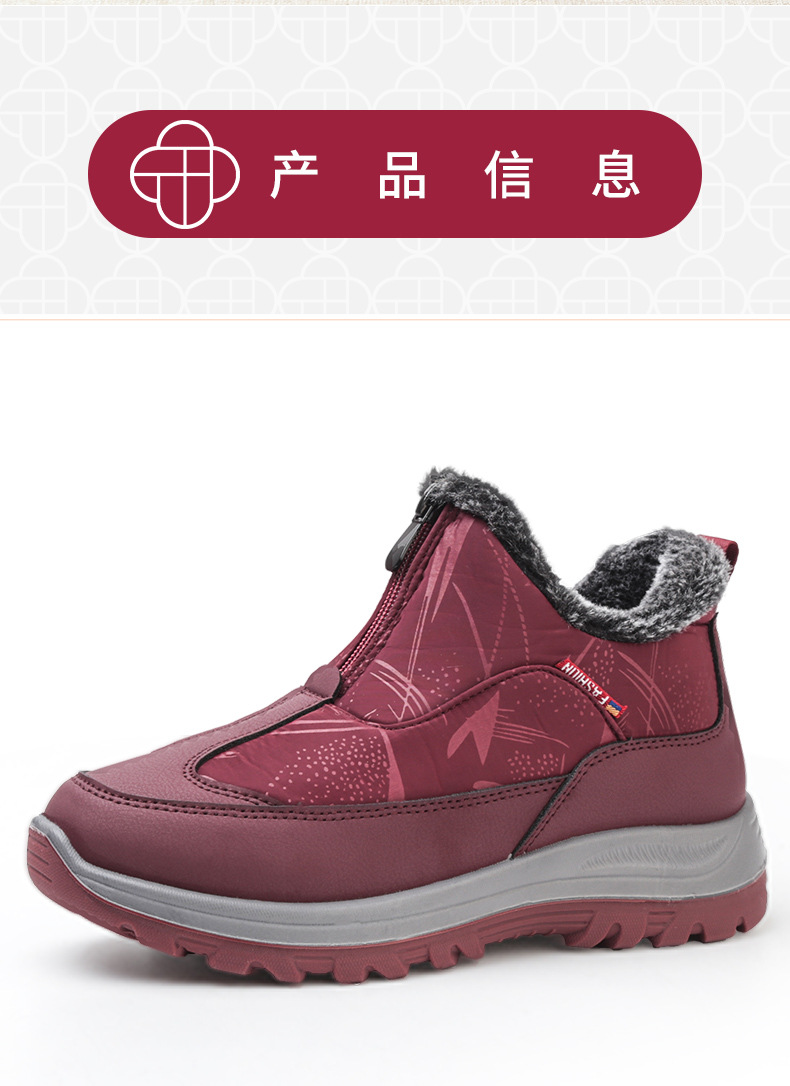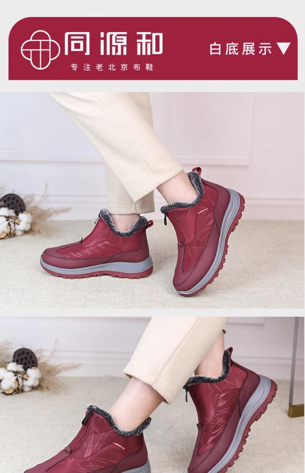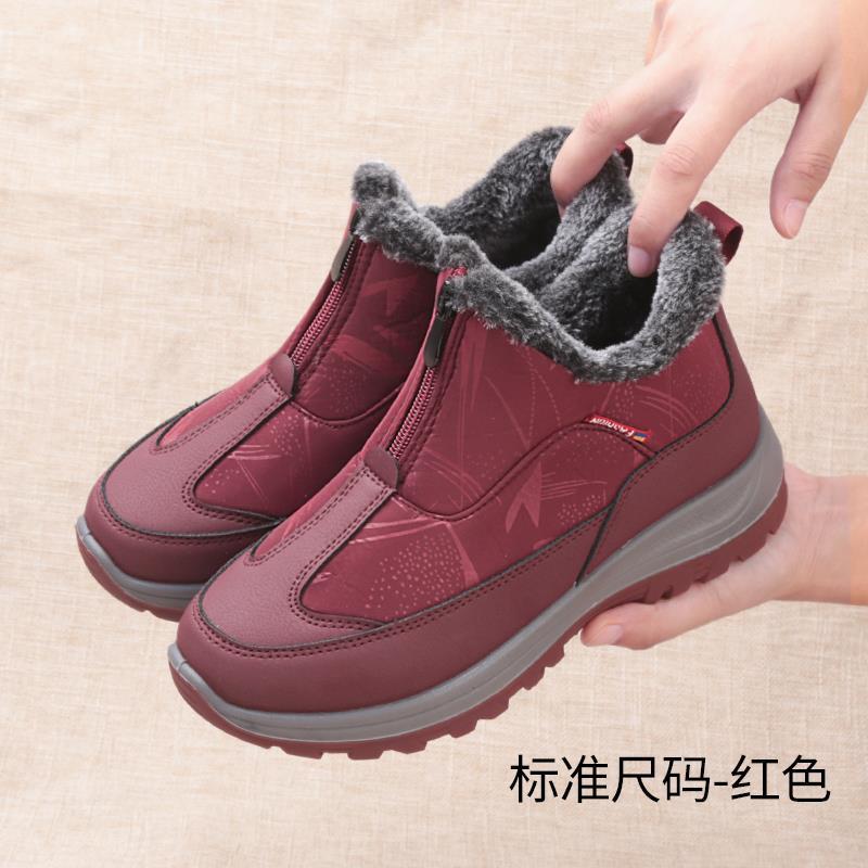 겨울철 여성용 올드 베이징 면화, 벨벳으로 두껍게, 따뜻하고 미끄럼 방지 및 방수, 중년 및 노인 천 신발, 어머니 면화 부츠, 할머니스토어 가기
