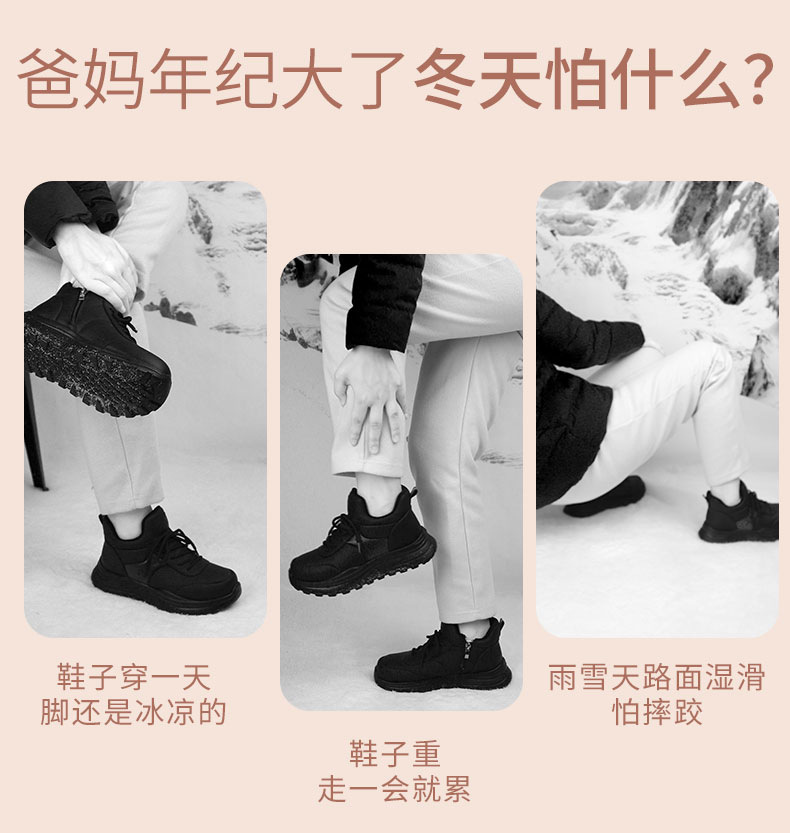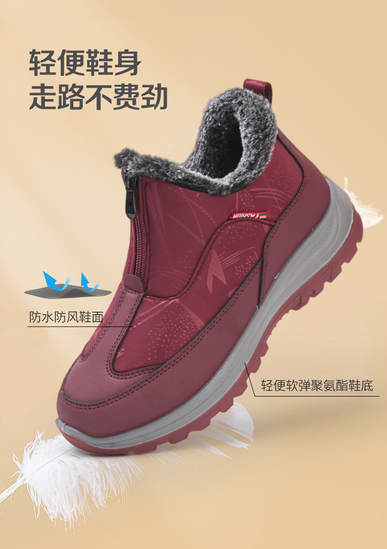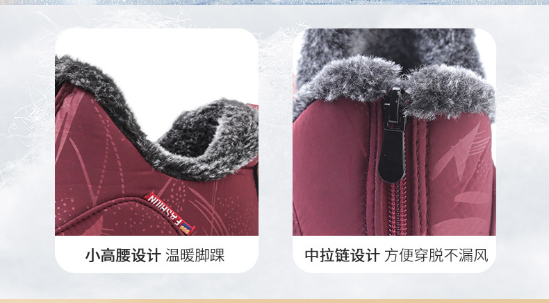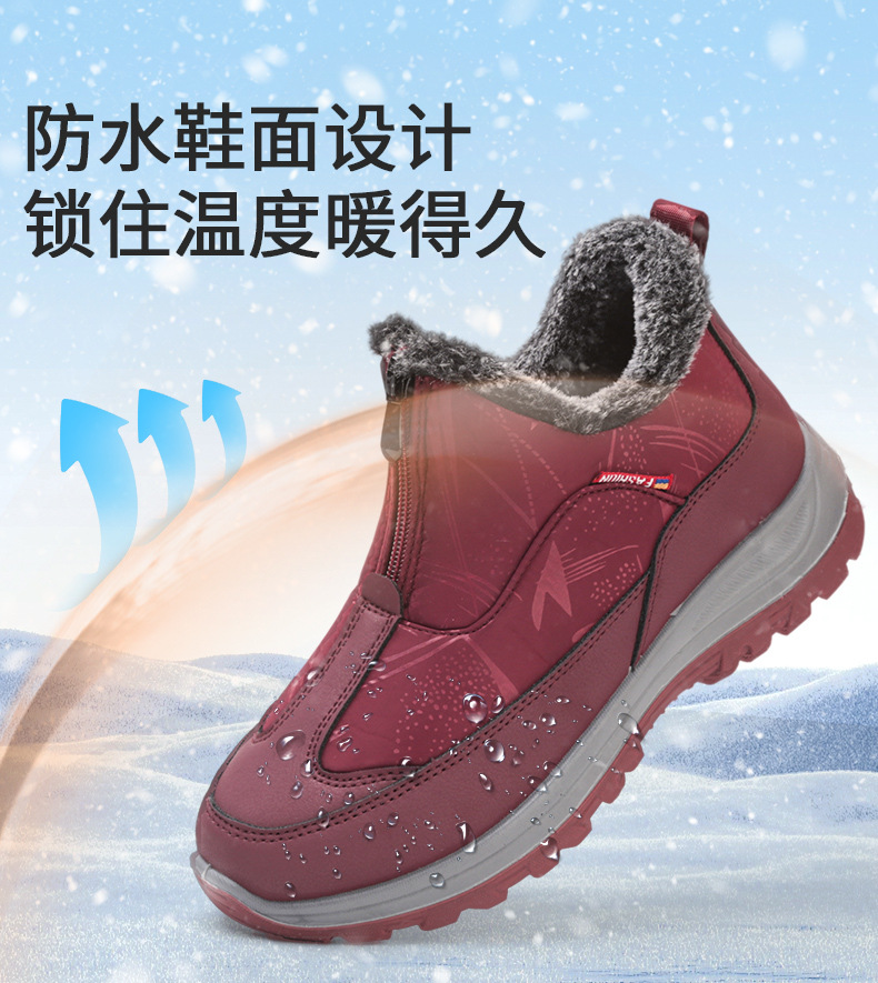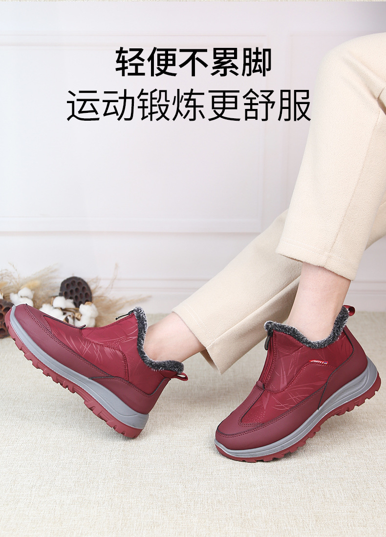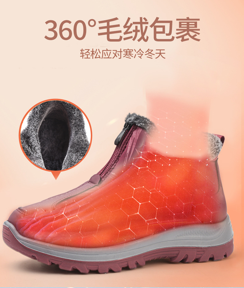 겨울철 여성용 올드 베이징 면화, 벨벳으로 두껍게, 따뜻하고 미끄럼 방지 및 방수, 중년 및 노인 천 신발, 어머니 면화 부츠, 할머니스토어 가기