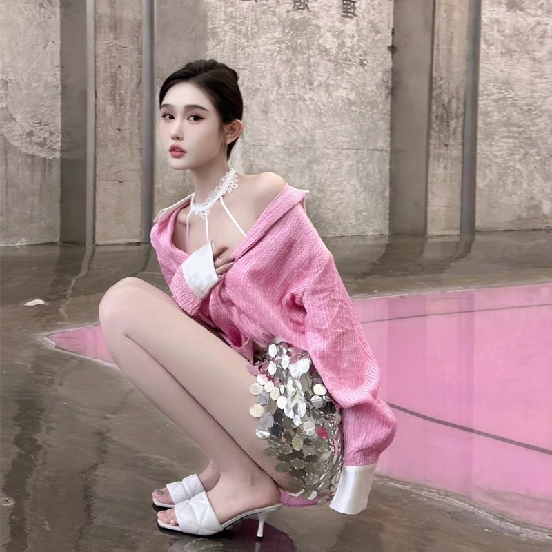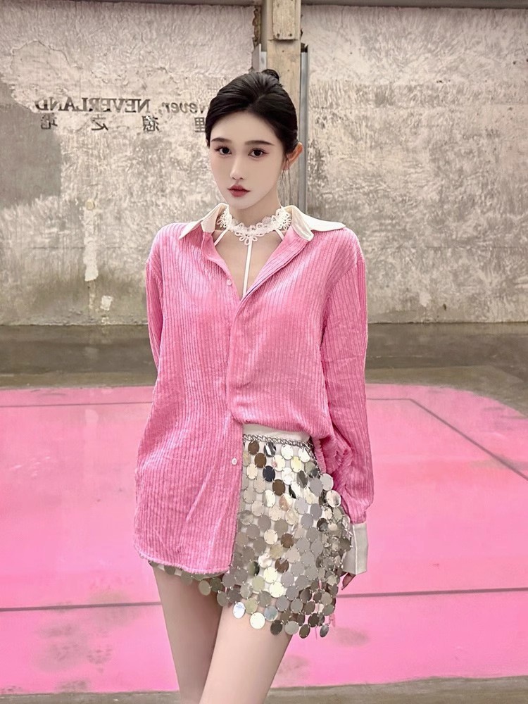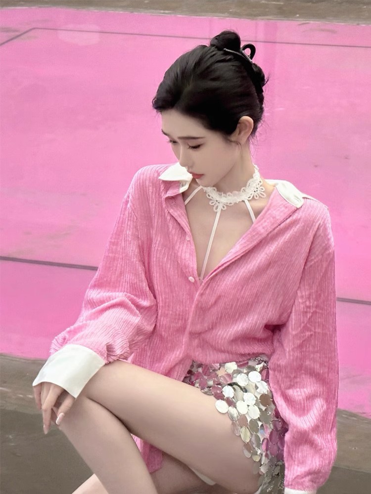 프렌치 스타일의 여성스러운 핑크 셔츠, 2025년 초가을 디자인, 독특하고 아름답고 패셔너블한 탑스토어 가기