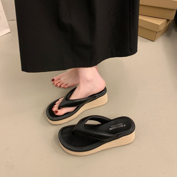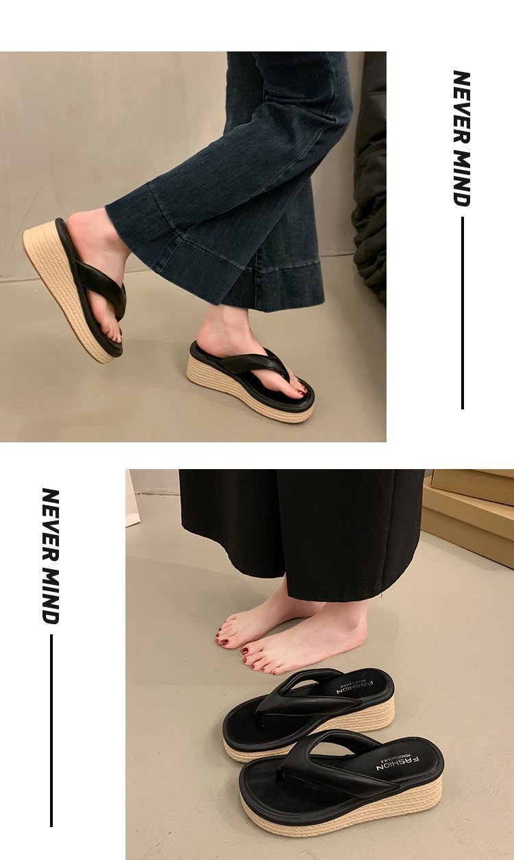 厚底人字拖女外穿2025夏季新款休闲舒适坡跟小个子夹脚凉拖鞋