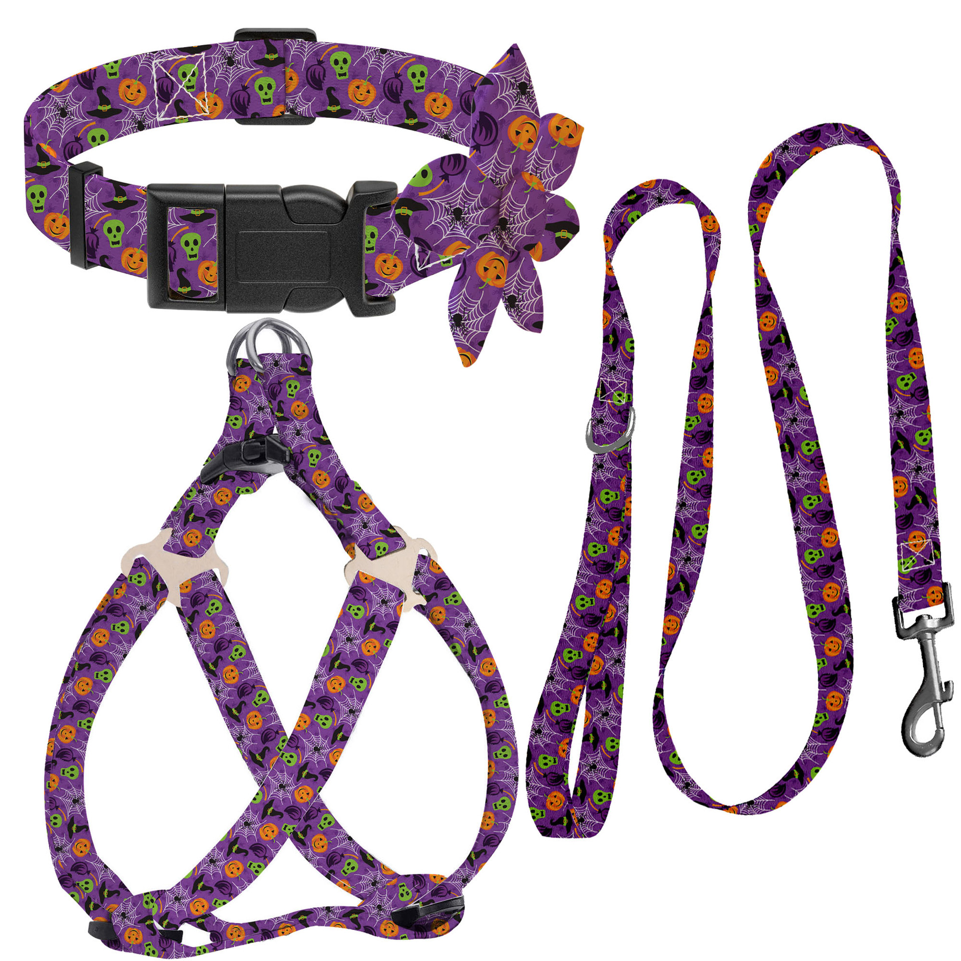 할로윈 강아지 하네스, 가죽끈, 칼라 폴리에스테르 스트랩 프린트 세트 애완동물 용품, 아마존스토어 가기