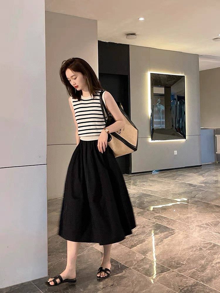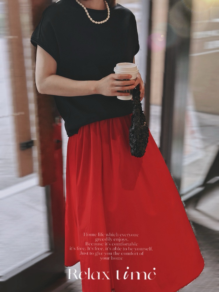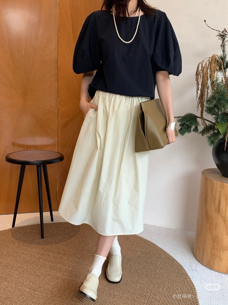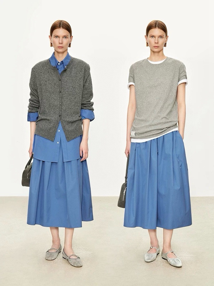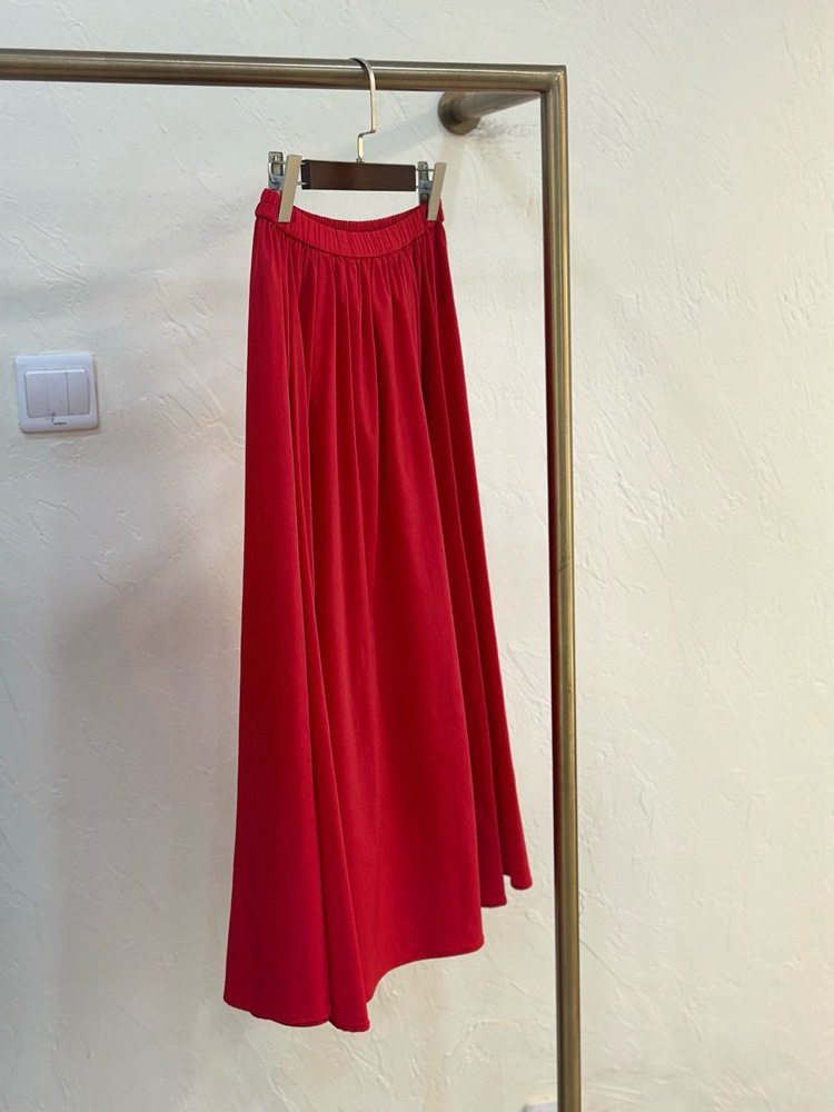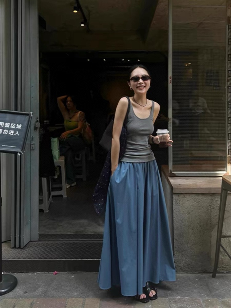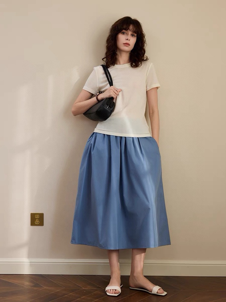 미니멀리스트 일출 ~ A 라인 스커트 슬리밍면 우산 스커트 여성의 탄성 허리 중간 길이 오버 스커트 공기 청록색 푸른 봄과 여름 느낌스토어 가기
