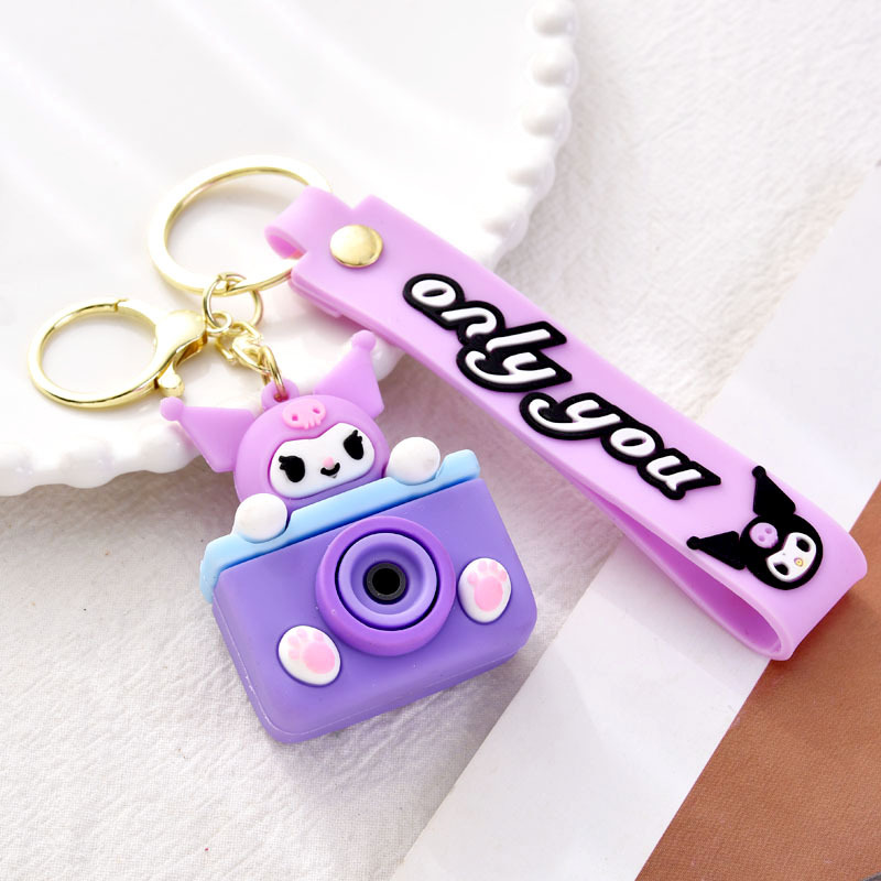 창조적 인 귀여운 카메라 산리오 키 체인 만화 Kulomi Merlot 학교 가방 펜던트 어린이 작은 선물스토어 가기