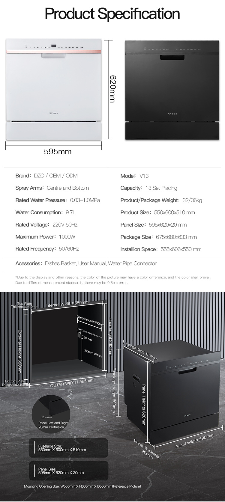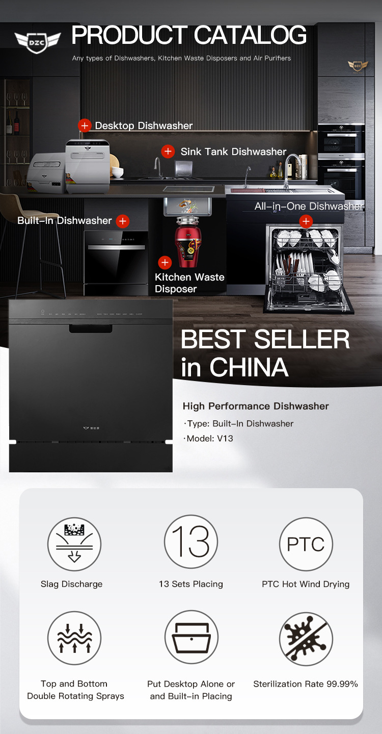 Desi 주방 수준의 물 효율 임베디드 식기 세척기 가정용 13 세트의 소독 및 건조 지능형 이중 스프레이 비용 효과