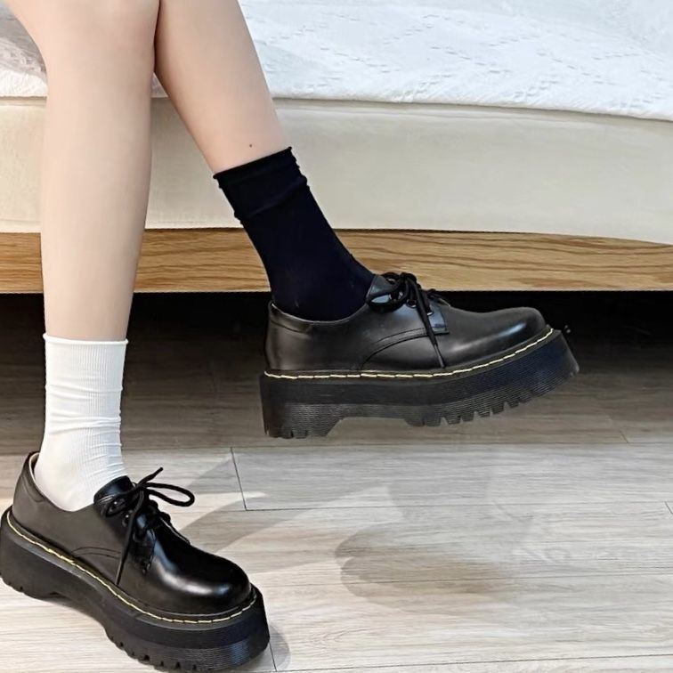 복고풍 디자인 Yang Mi의 같은 스타일의 작은 가죽 신발 2025 가을 새로운 플랫폼 플랫 두꺼운 밑창 높이 증가 메리 제인 신발스토어 가기