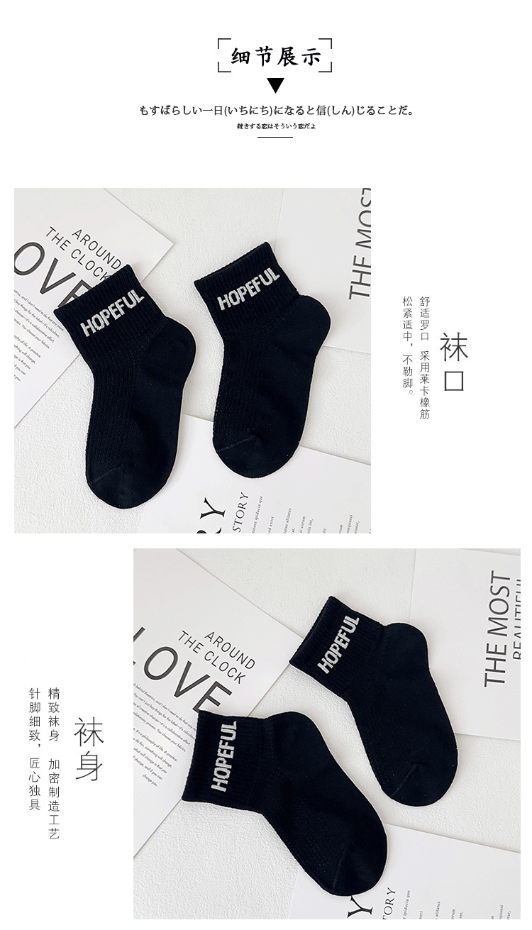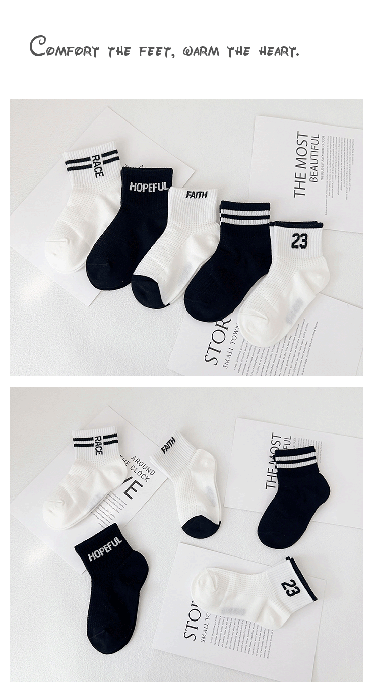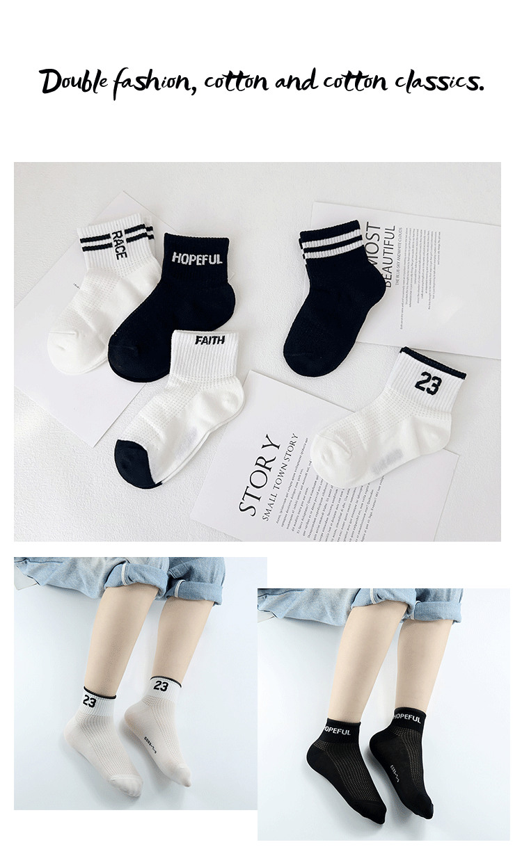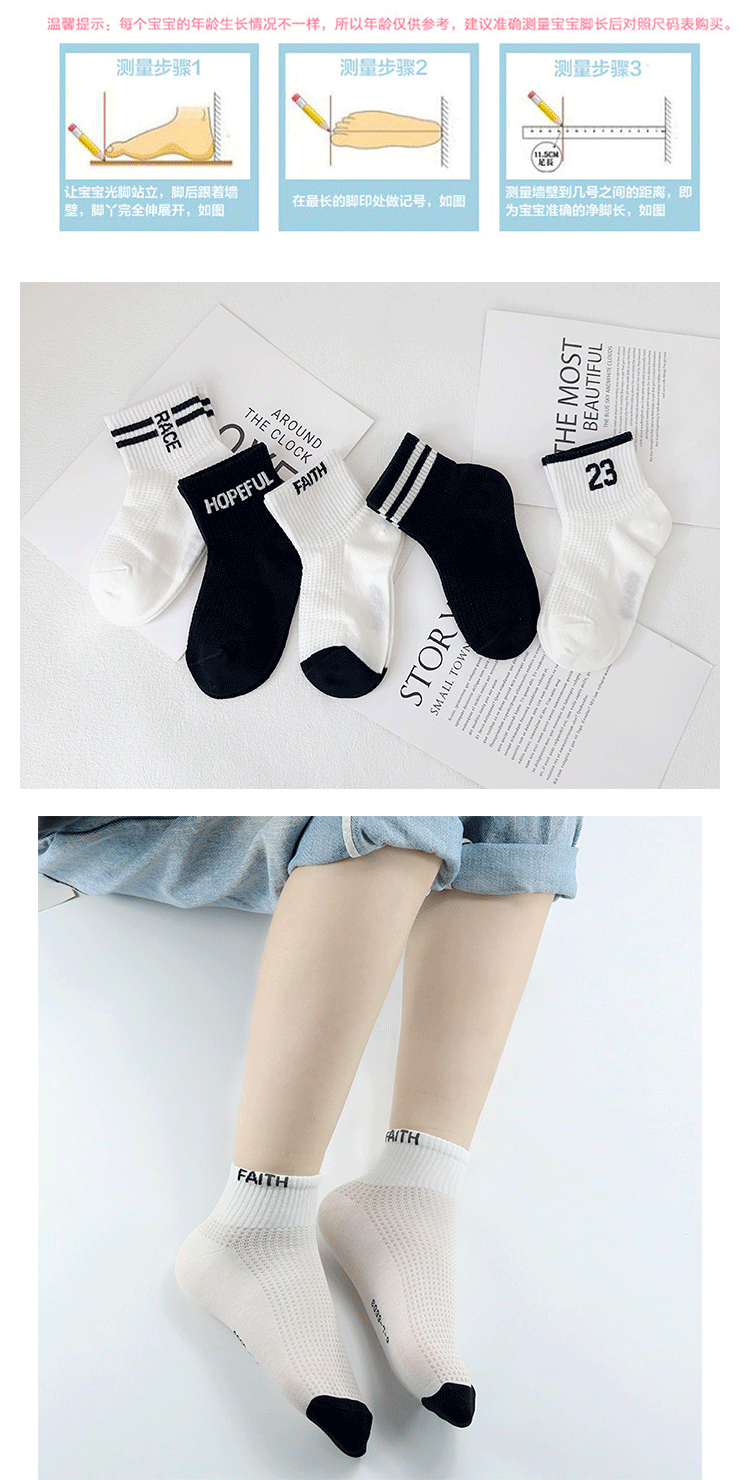 Yi Shuang 어린이 양말 여름 큰그물 초박형 유행 브랜드 편지 짧은 양말 코튼 블랙과 화이트 소년의 에어컨 양말스토어 가기