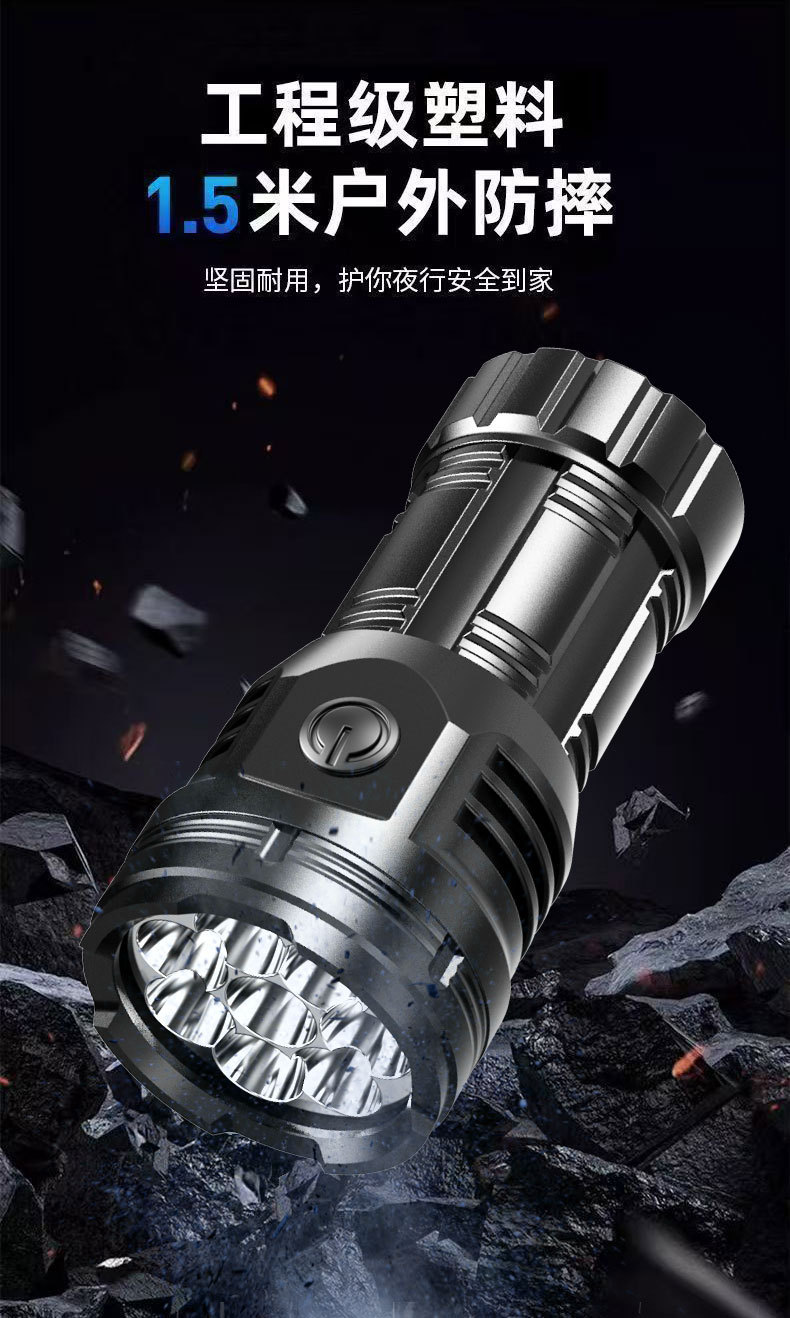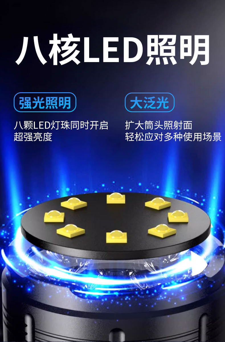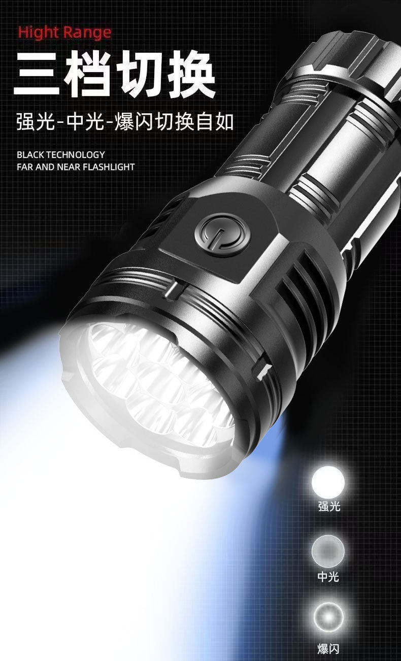 국경 간 8 코어 밝은 손전등 강한 빛 장거리 USB 충전식 야외 휴대용 슈퍼 밝은 LED 휴대용 손전등스토어 가기