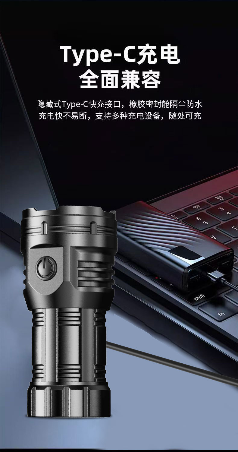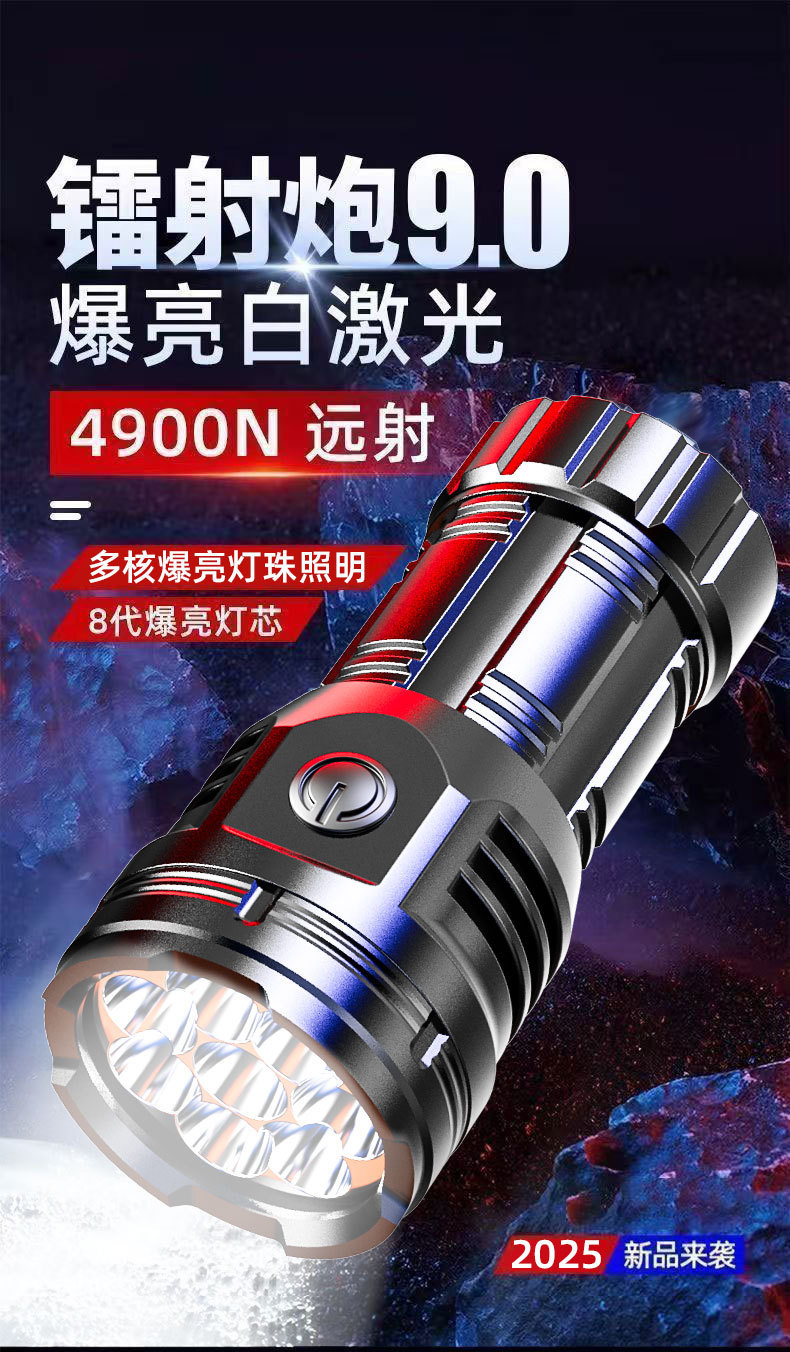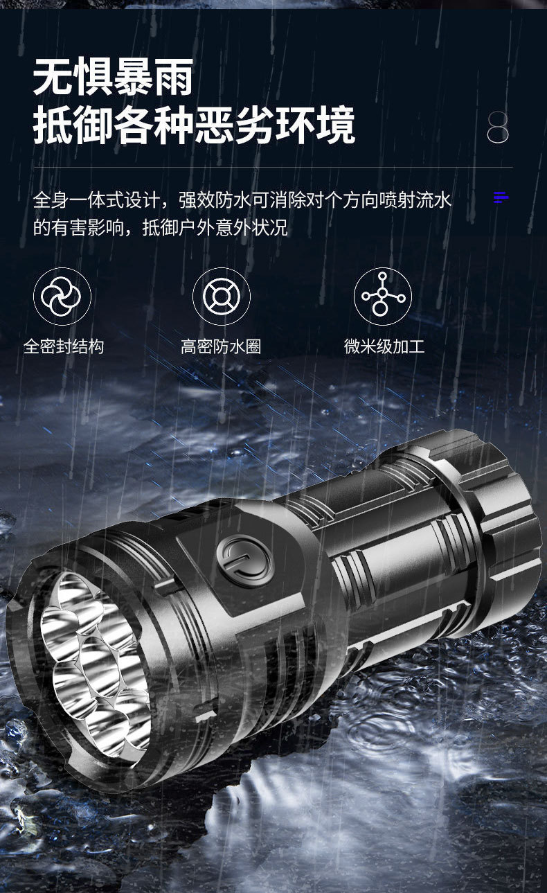 국경 간 8 코어 밝은 손전등 강한 빛 장거리 USB 충전식 야외 휴대용 슈퍼 밝은 LED 휴대용 손전등스토어 가기