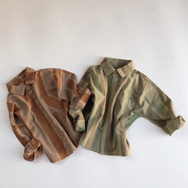 한국 스타일 어린이 줄무늬 셔츠 봄과 가을 새로운 소년과 소녀 아기 복고풍 격자 무늬 셔츠 카디건 서양식