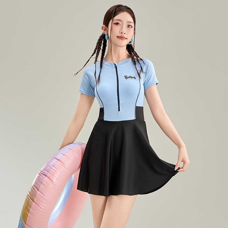수영복 여성 2025 원피스 스포츠 수영복 간단한 보수적 슬림 슬림 원피스 휴가 수영복 도매