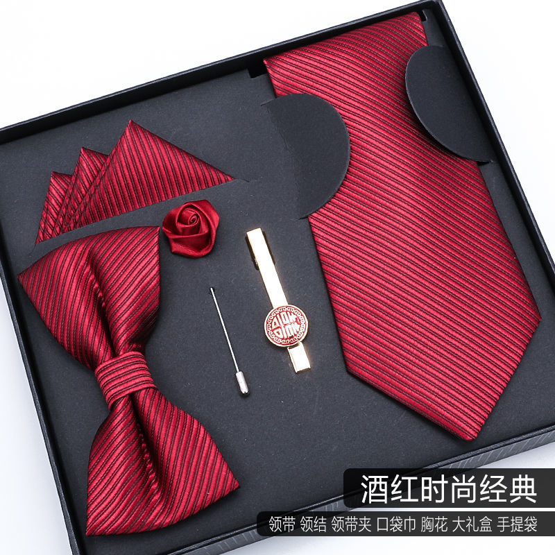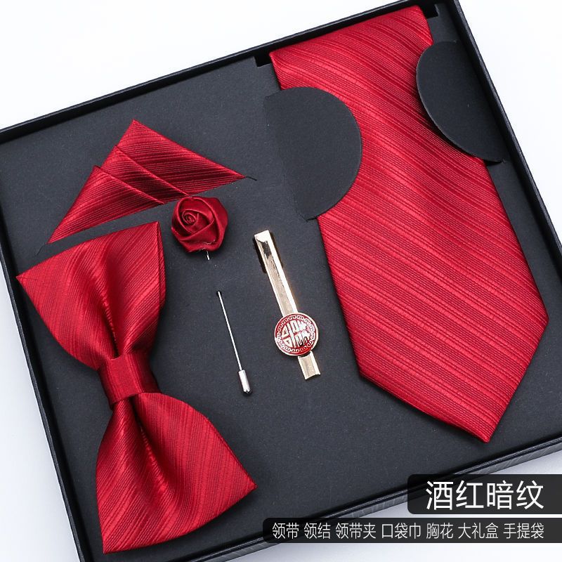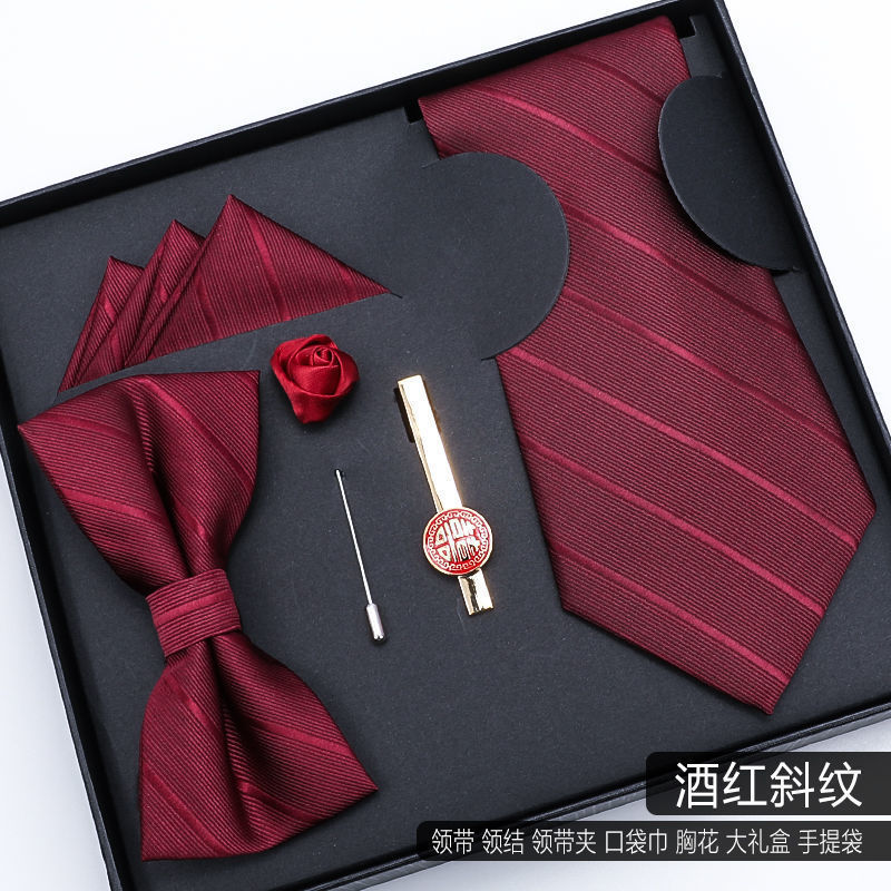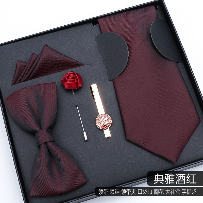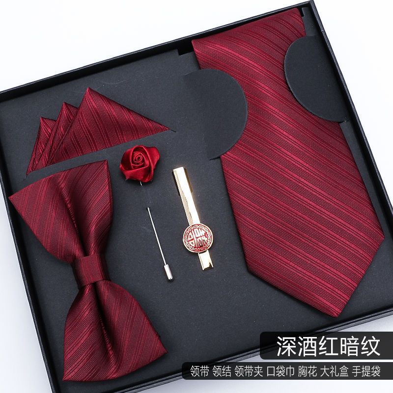 남성용 넥타이 5종 선물세트, 비즈니스 웨딩 신랑 나비넥타이, 사각 스카프, 넥타이 클립, 남자친구 선물스토어 가기