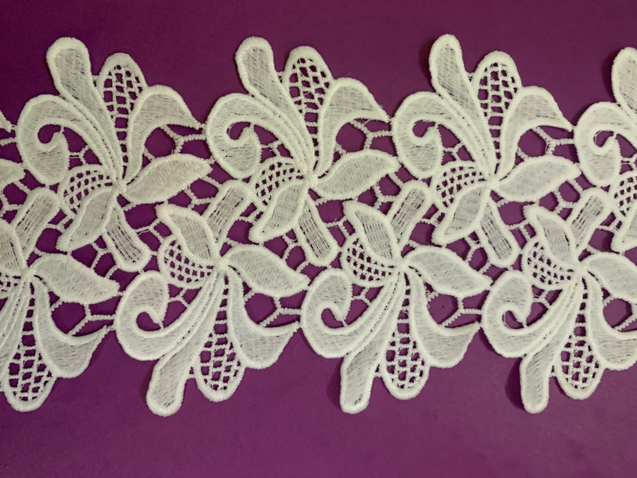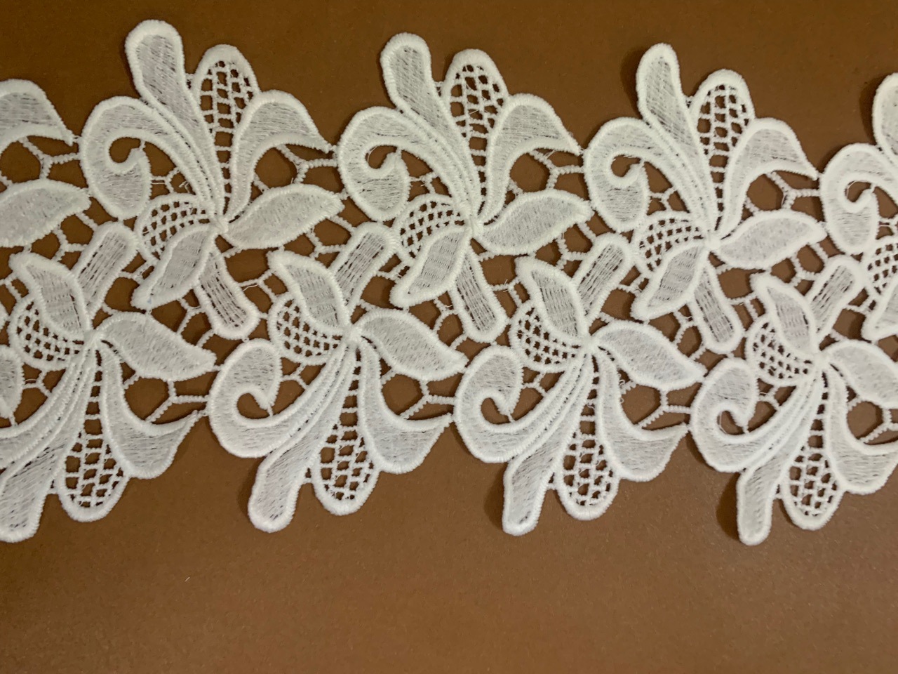 mlcs7920#:13cm宽,牛奶丝水溶面料,适合于服装辅料,女装童装绣花花边,颜色本白,可自定义颜色,除黑色外,其它颜色需一定数量,另加染色费,厂家生产速度快,价格实惠,质量好,欢迎来样定做