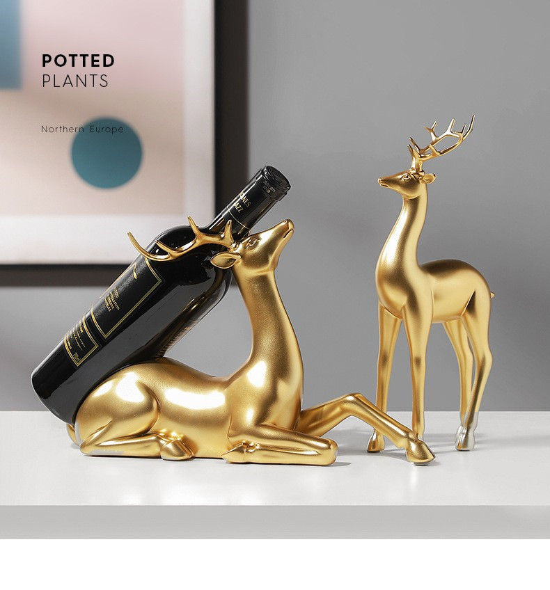 [특별 제공] 황금 사슴 와인 랙 룸 와인 캐비닛 데스크탑 장식 시뮬레이션 동물 빛 럭셔리 수지 공예스토어 가기