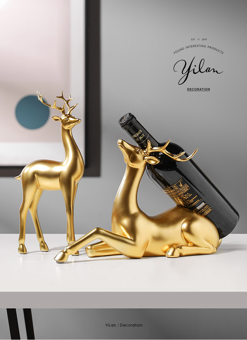 [특별 제공] 황금 사슴 와인 랙 룸 와인 캐비닛 데스크탑 장식 시뮬레이션 동물 빛 럭셔리 수지 공예