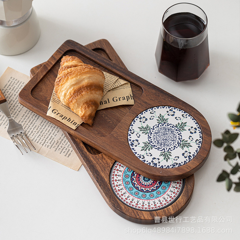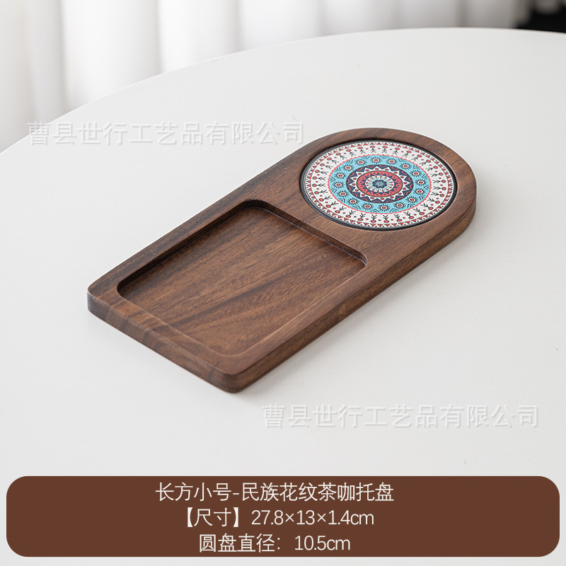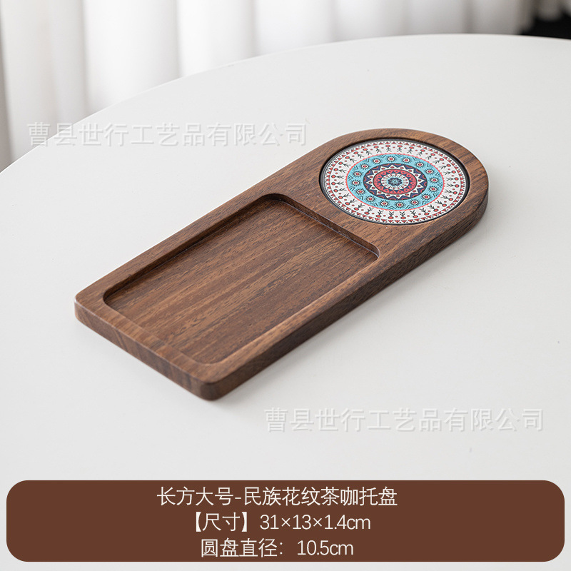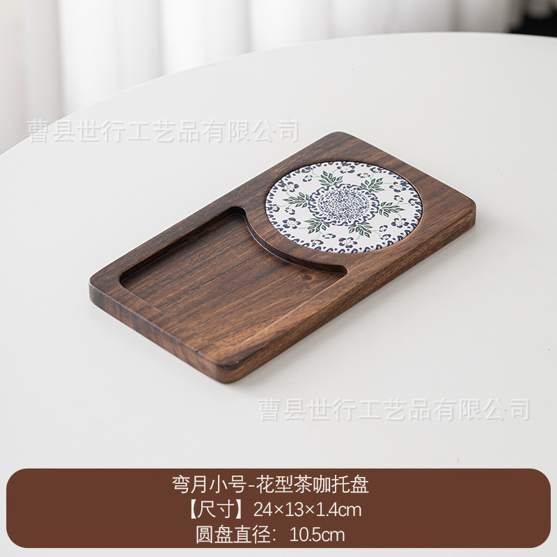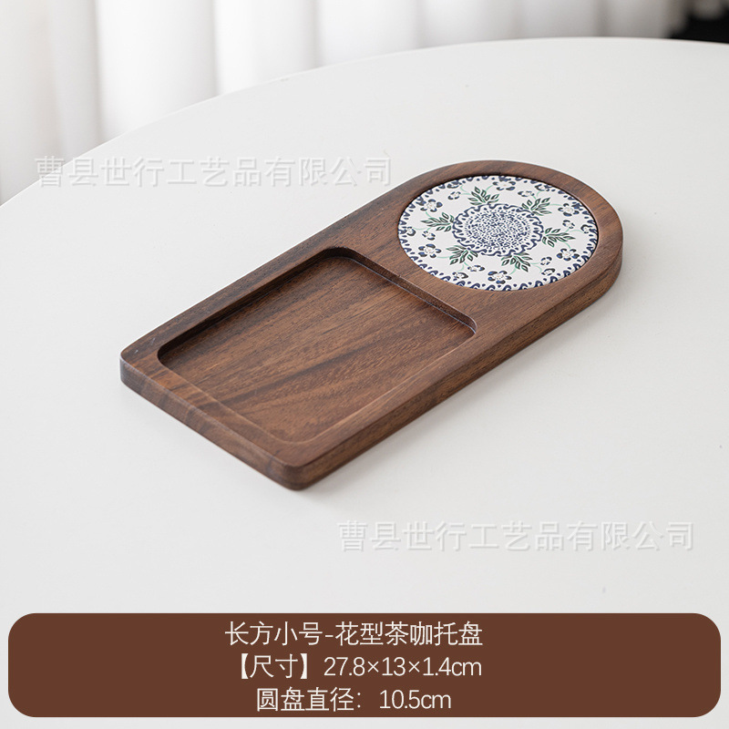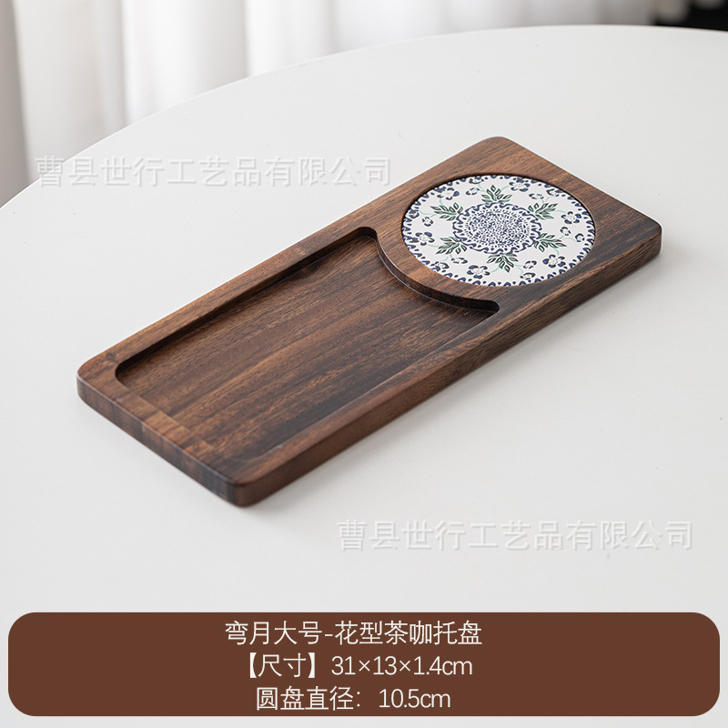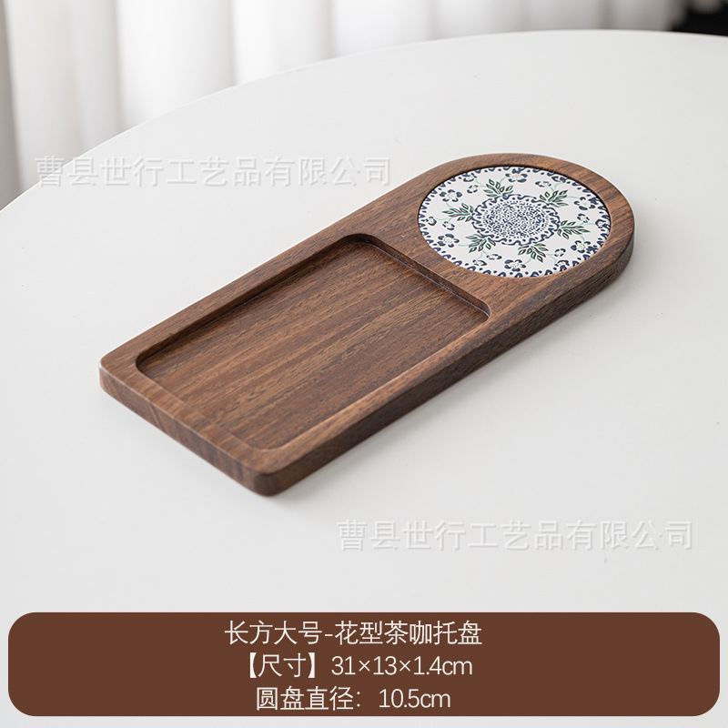 단단한 나무 트레이 일본 아침 식사 커피 컵 트레이 차 트레이 나무 오후 차 빵 스낵 디저트 트레이스토어 가기