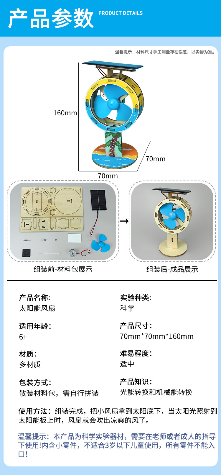 과학 및 교육 최첨단 과학 실험 초등학생 수제 태양광 팬 과학 기술 소규모 생산 회로 실험 장비