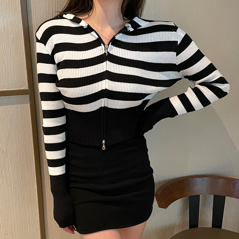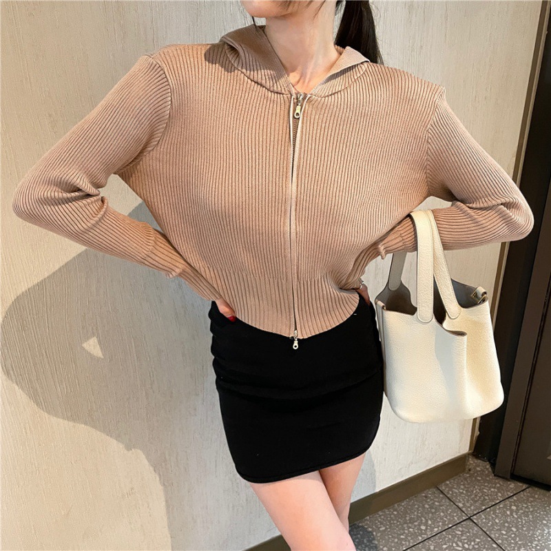 리얼 샷 2025 가을 새로운 디자인 후드 더블 헤드 지퍼 느슨한 니트 카디건 코트스토어 가기