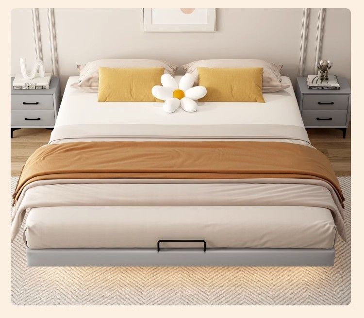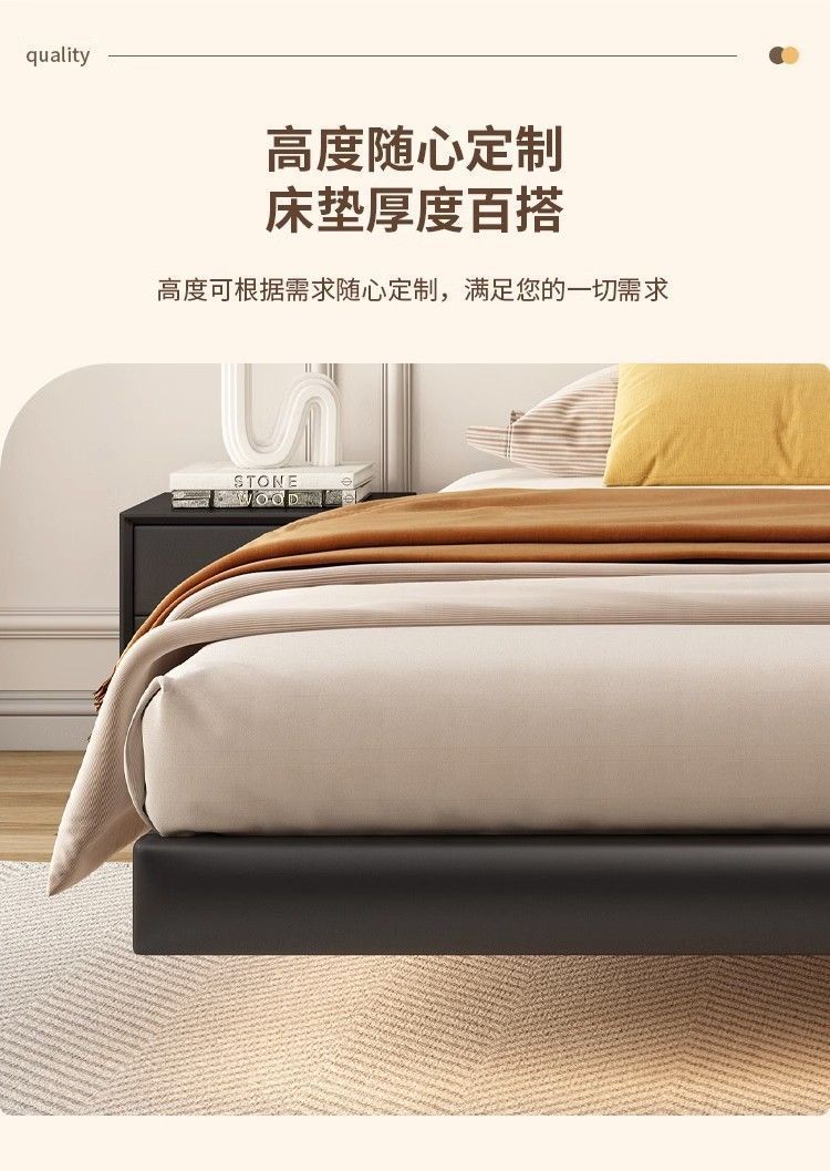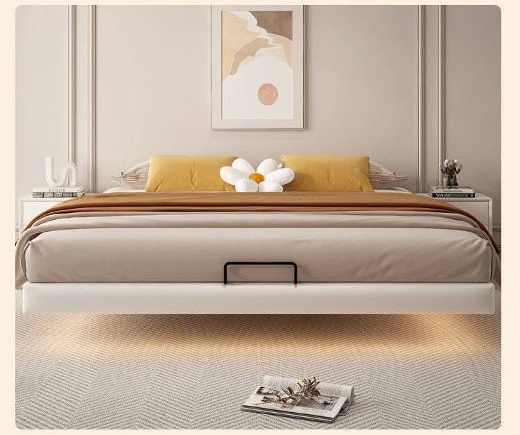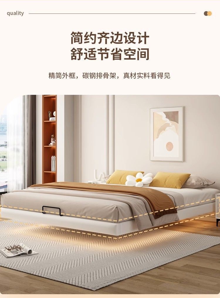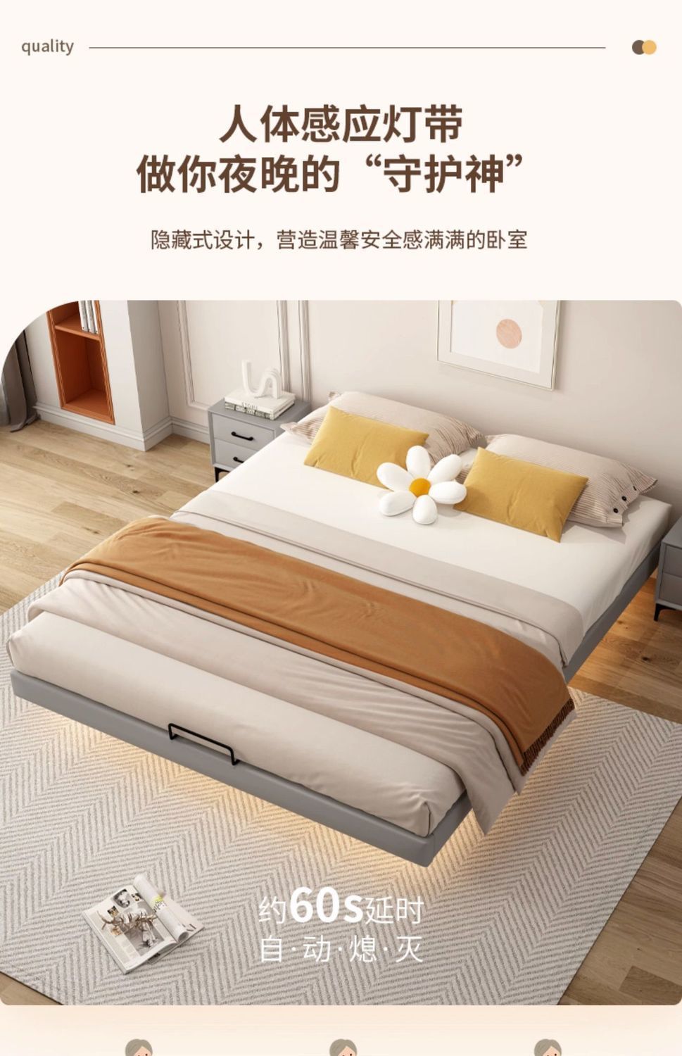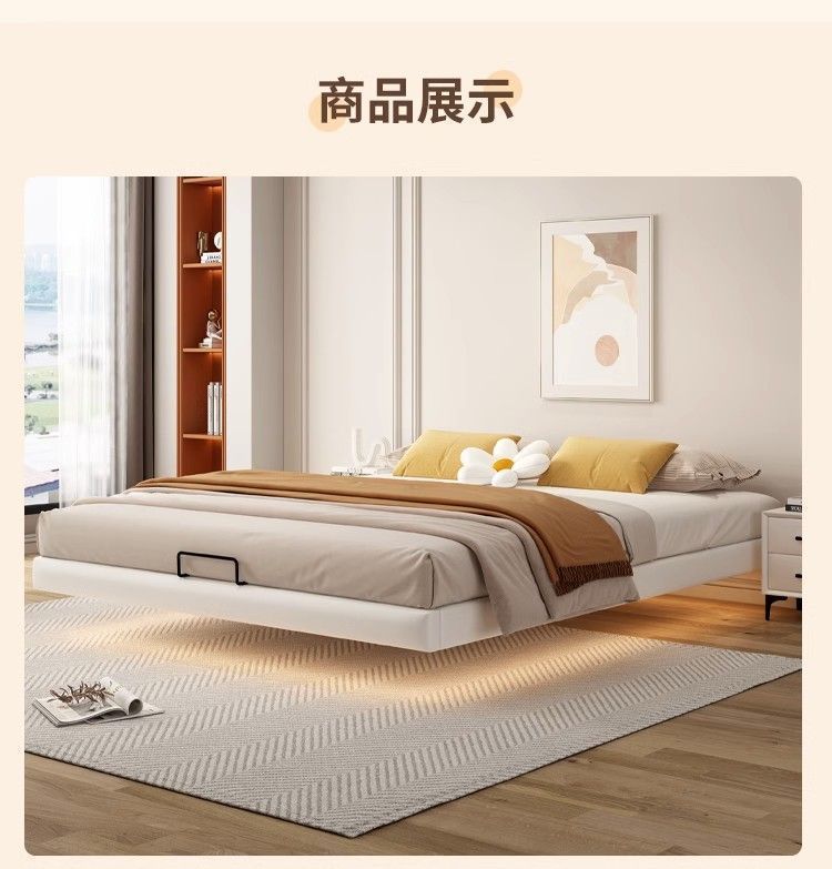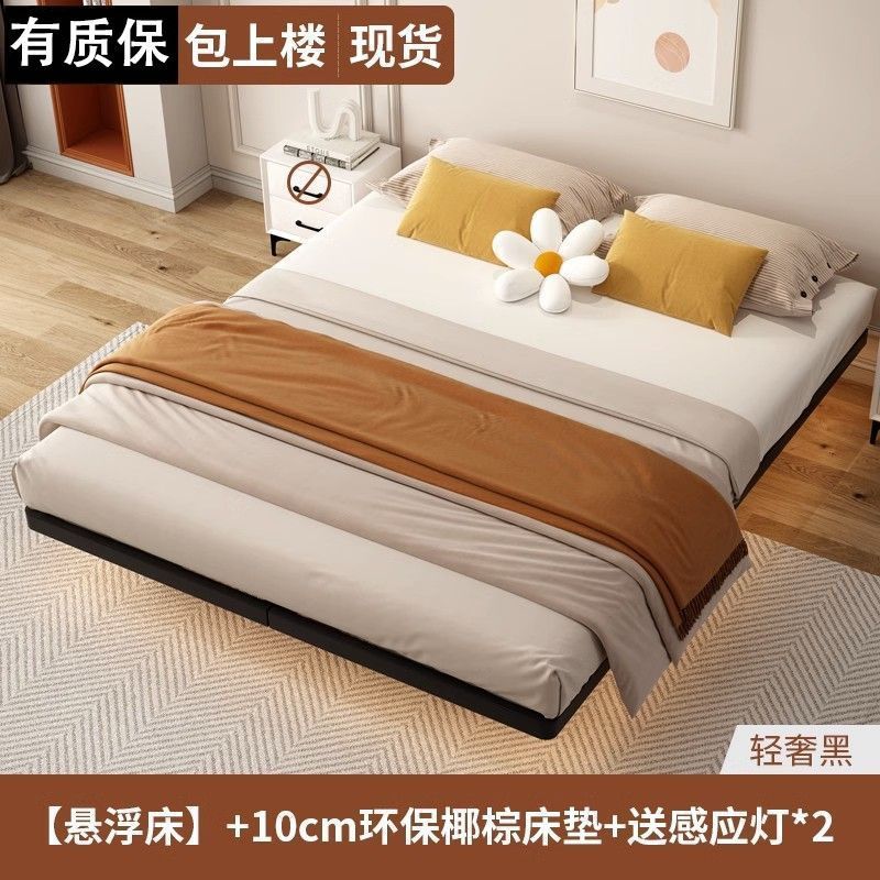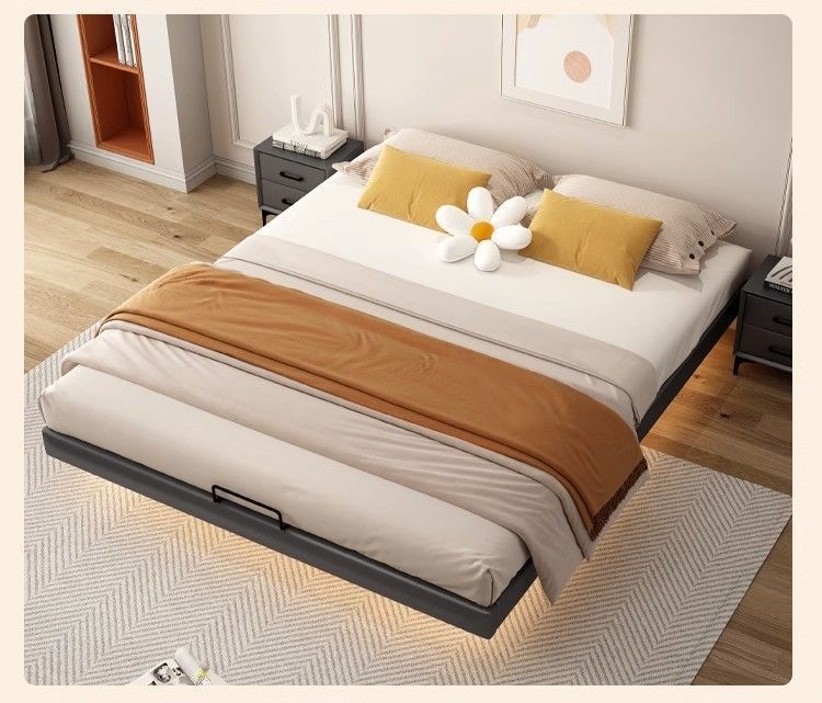 • 플로팅 침대 침대 프레임 [라이트 럭셔리 블랙] - 센서 라이트 스트립 x2