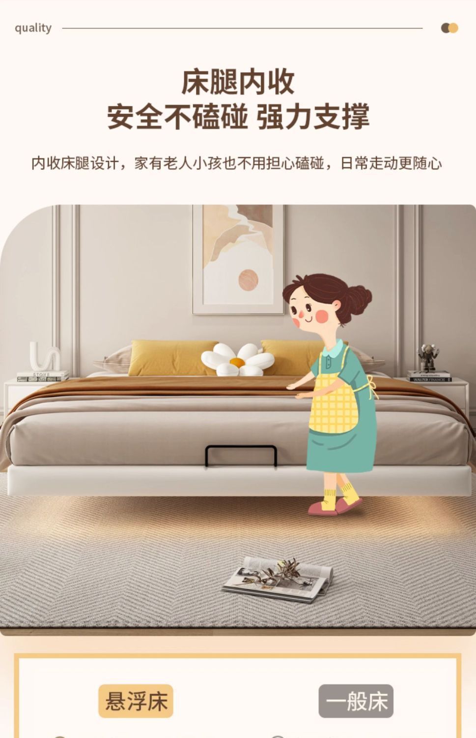 • 서스펜션 침대 [크림 화이트] - 센서 라이트 스트립 x2
