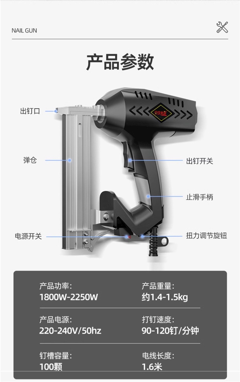 • [업그레이드 모델] F30 스트레이트 네일건 [무료 스트레이트 네일 1200개 + 예비 발사핀]